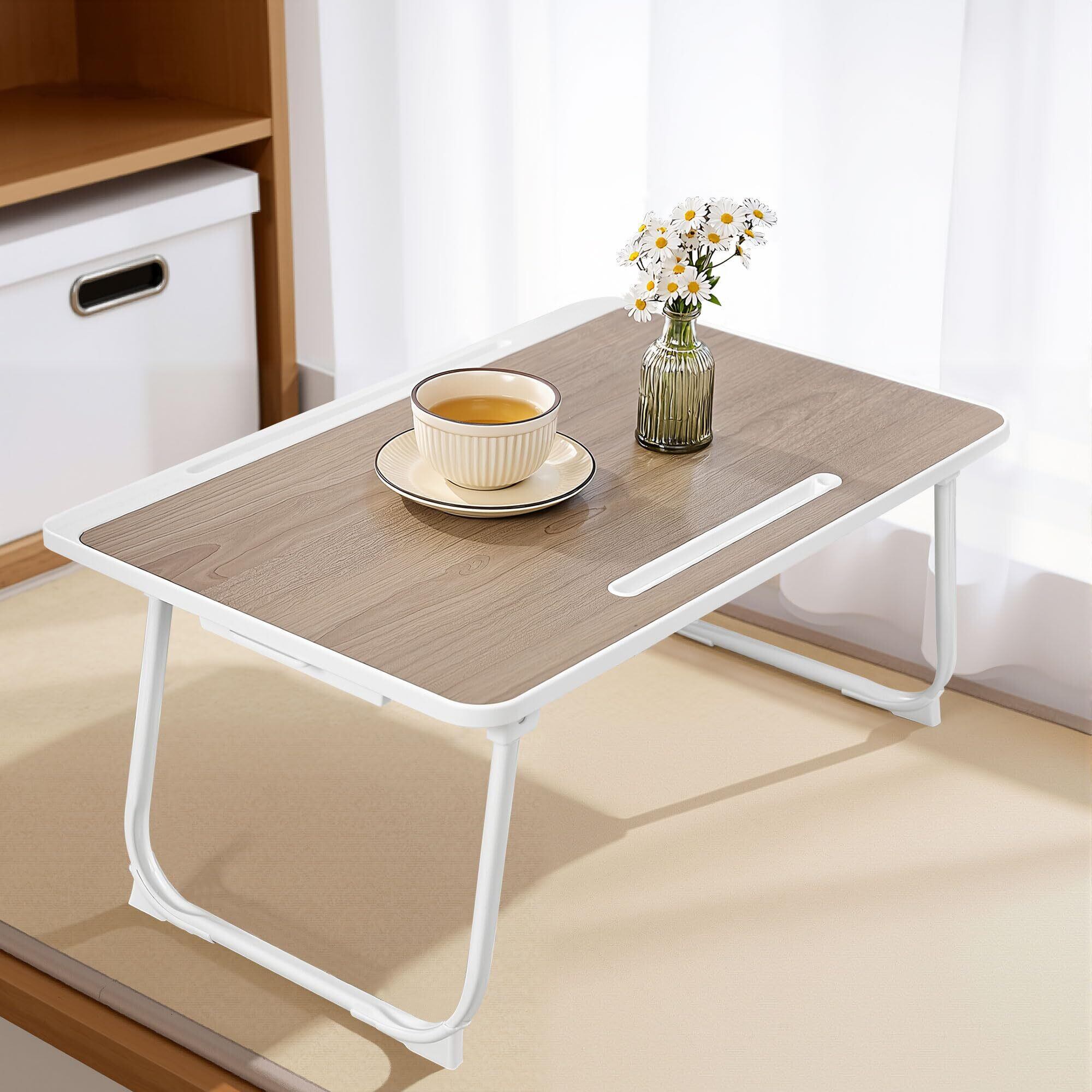 VECELO 折りたたみテーブル ミニテーブル ローテーブル 机 一人暮らし 小さい ちゃぶ台 ベッドテーブル ベッドデスク 軽量 省スペース 多機能 ノートPC タブレットスタンド コップホルダー 収納便利 在宅勤務 食事 勉強 組み立て不要
