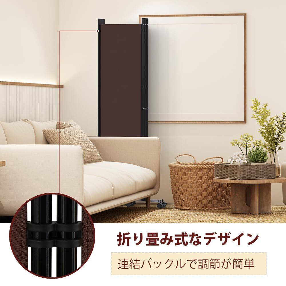 パーテーション 6連タイプ間仕切り 高さ178cm 幅302cm キャスターやカバーストリップ付き 折り畳み式 パーティション 衝立スクリーン 区切り 目隠し 省スペース オフィス 事務所 リビング (ブラウン)