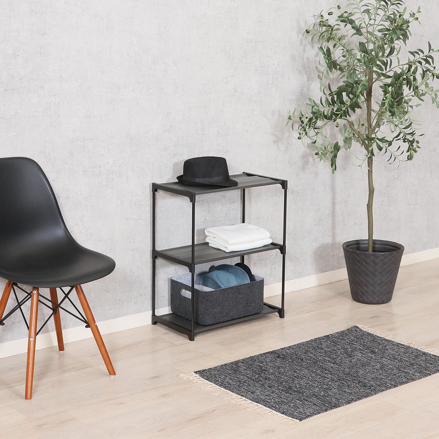 不二貿易 オープンラック シェルフ 3段 収納棚 幅54.5×奥行30×高さ62cm ブラック 軽量 工具不要 51126