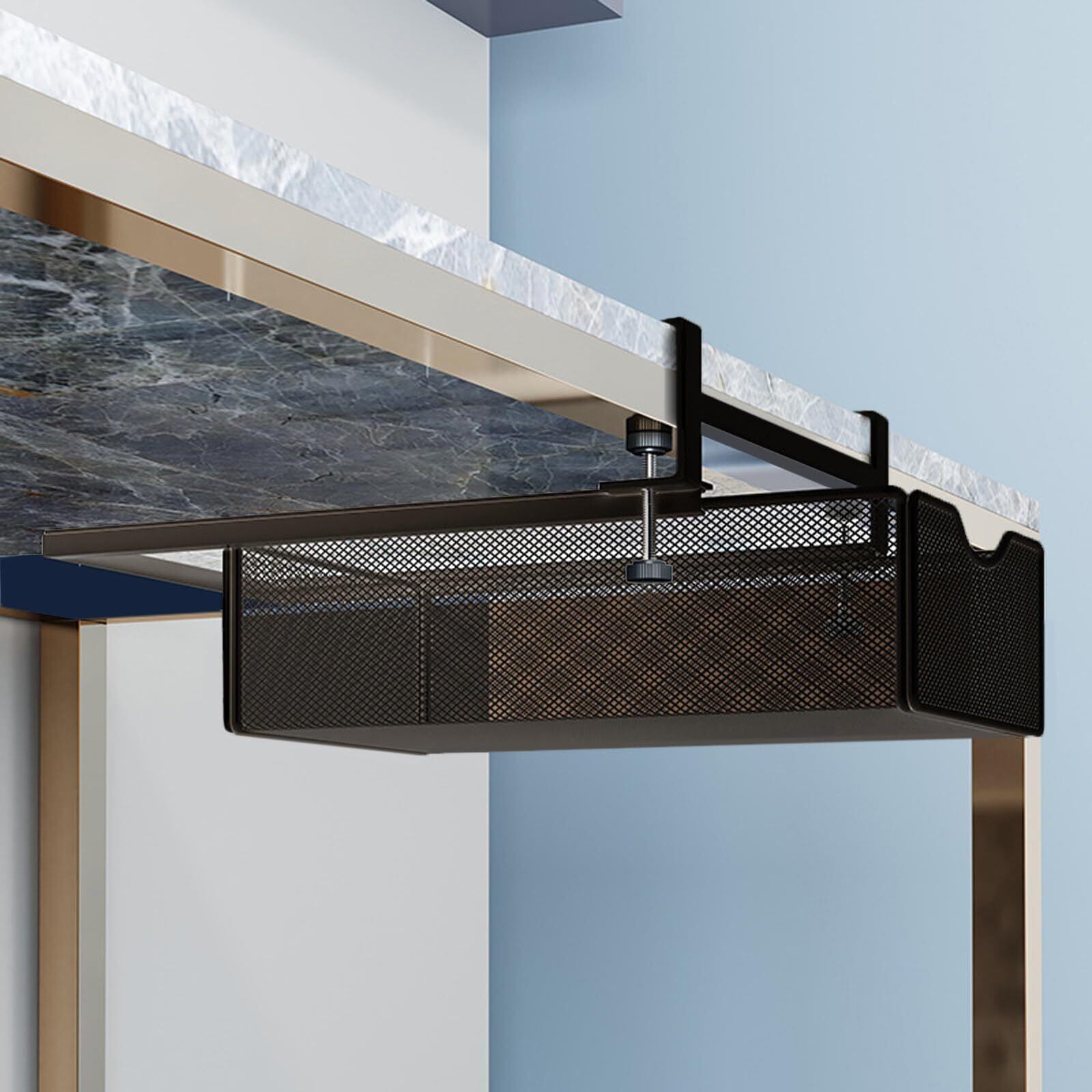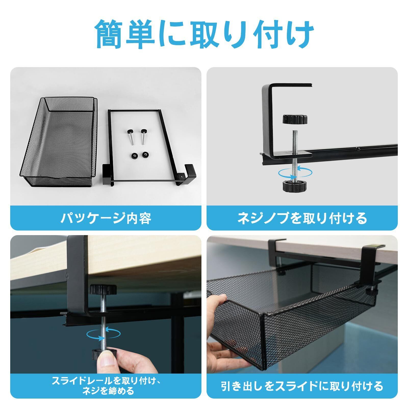 【簡単に取り付け】 この製品は取り付けが簡単で、ドライバー不要で、手で後付け引き出しをテーブルトップに固定し、クランプを締めるだけです。スライド式の後付け引き出しなので、サッと取り出しができます。