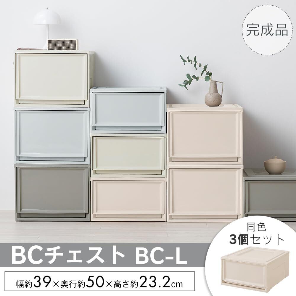アイリスオーヤマ 収納ケース 積み重ね 3個 チェスト 引き出し クローゼット 完成品 衣類収納 新生活 一人暮らし 単品 BCチェスト 浅型 BC-L ライトベージュ
