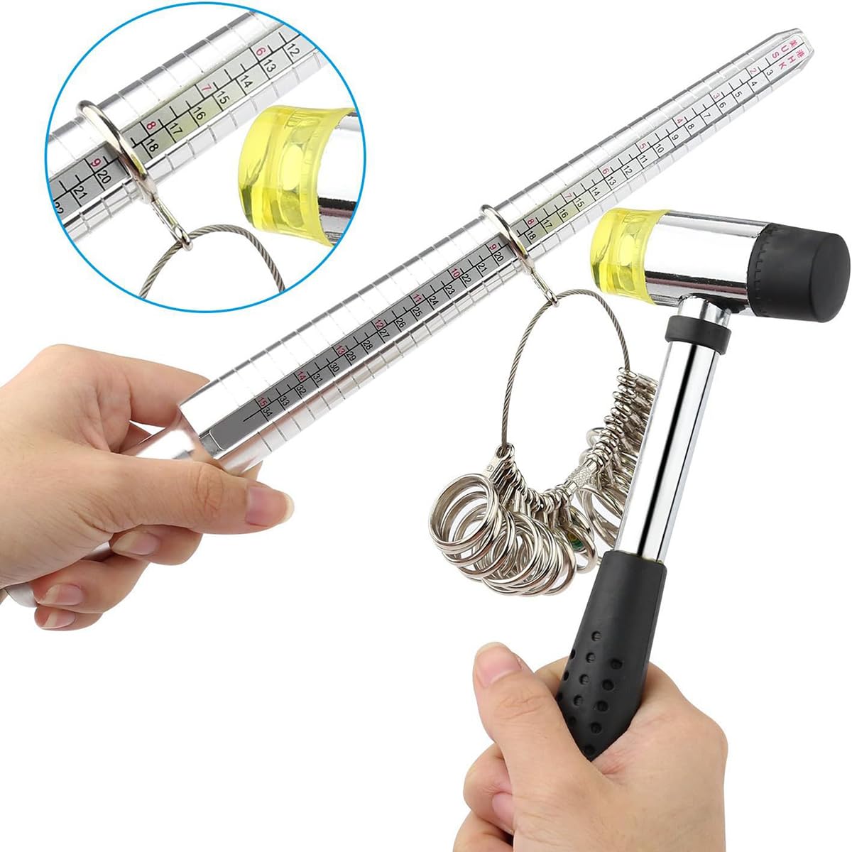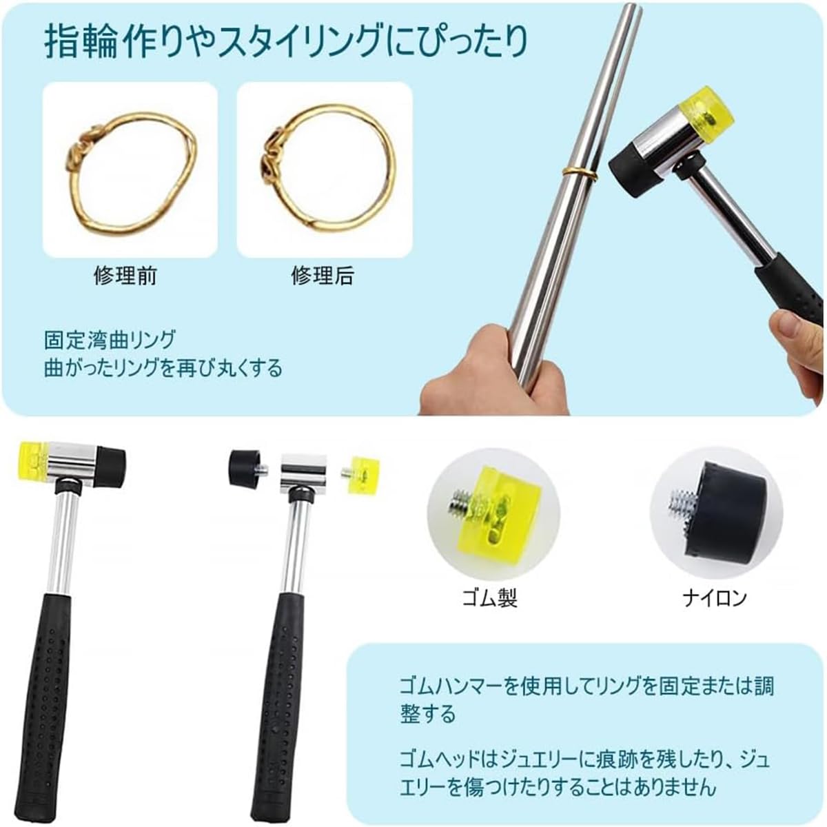 3点セットサイズ&指輪 サイズ棒 リングゲージ ハンマー 1号から28号まで対応 日本標準規格 サイズ 調整 プロ仕様 補修ツール ジュエリー用 工具 道具