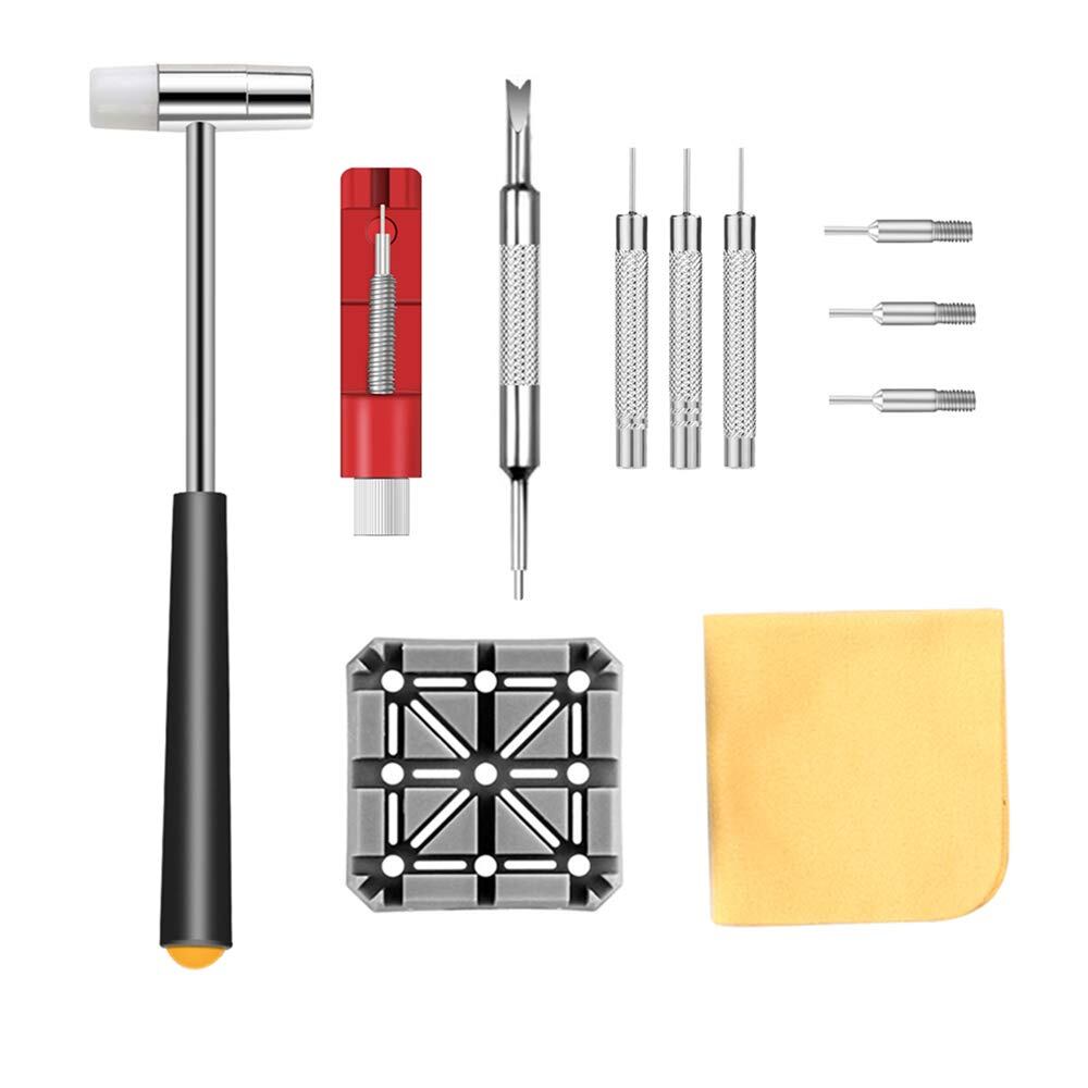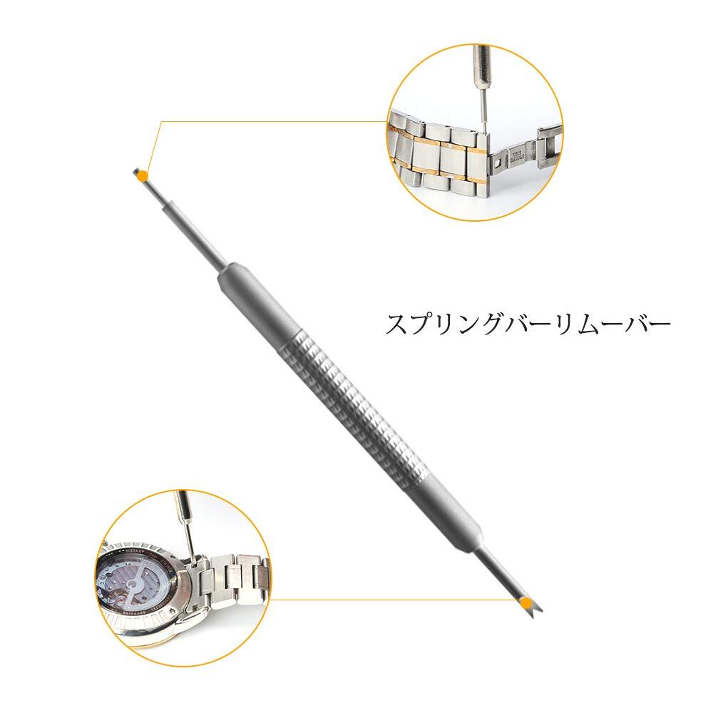 セット内容:金属ハンマー*1 ウォッチバンドリンクリムーバー*1 バネ外棒*1 腕時計ホルダー*1 ピンパンチ*3 クリーニングクロス*1 バネ外器交換用ビット*3
