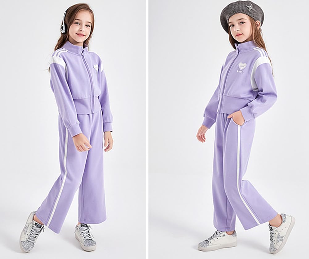 [NOMSOCR] 女の子 ジャージ 上下セット 子供服 ジッパーパーカー ワイドパンツ 2点セット ガールズ スウェット 長袖 スポーツウェア 120cm~170cm