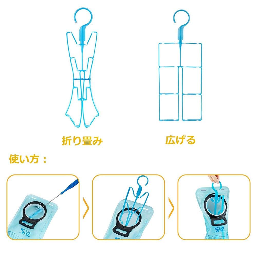 乾燥用ハンガーを使って、ハイドレーション内部の空間を最大限に広がって空気の流れをよくして、素早く乾かせます。