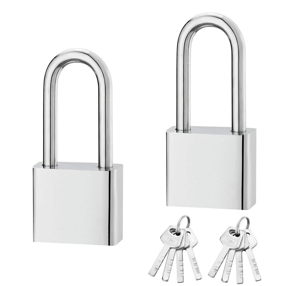 南京錠 小型 鍵付き 2個入り メッキ工程 防水 防錆 (シルバー・ロング)