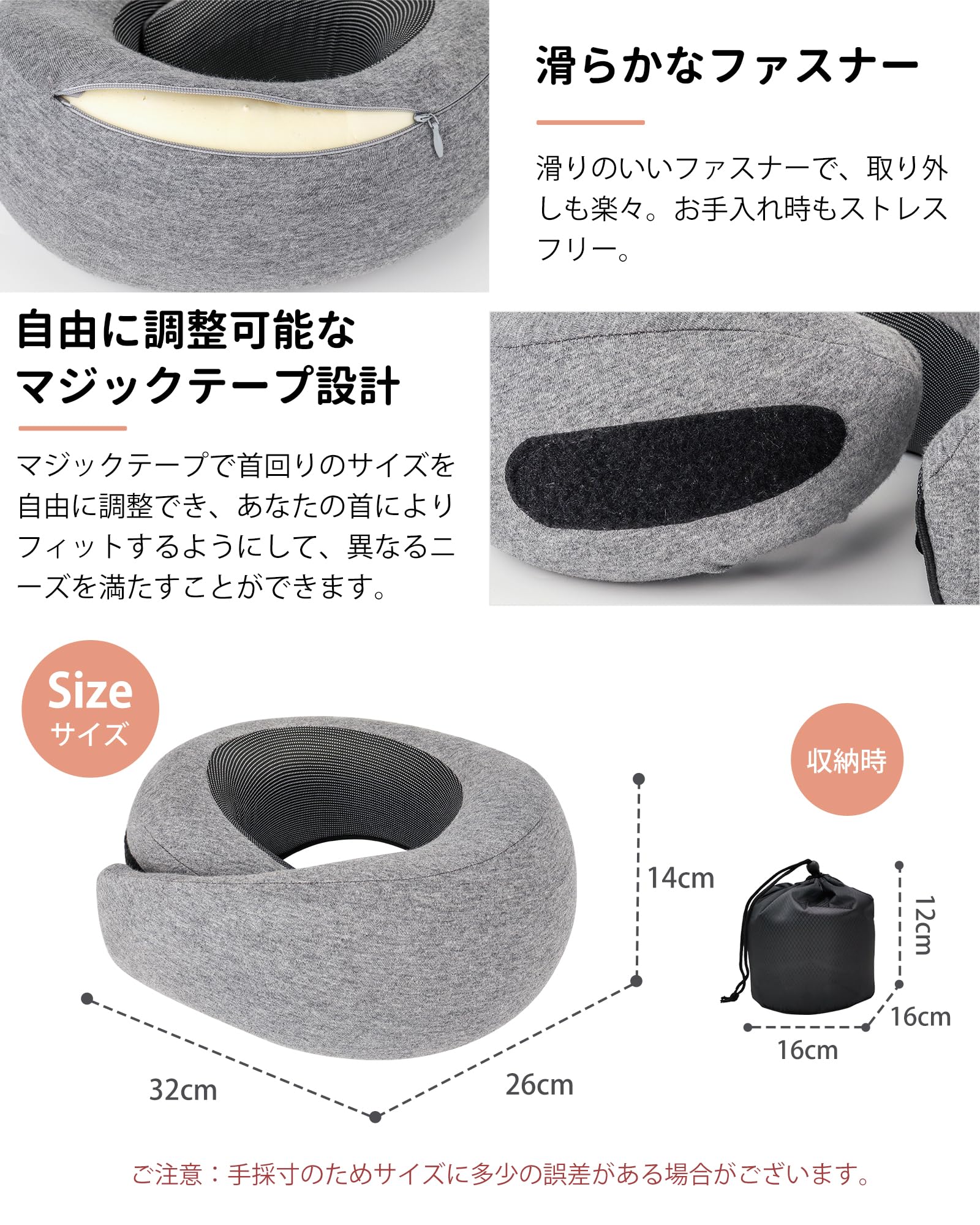 「適度な硬さが魅力」高密度の低反発ウレタンがゆっくり形状に追従し、首まわりにフィット。長時間の移動や待ち時間でも、安定感のある着け心地を感じられるよう配慮しています。