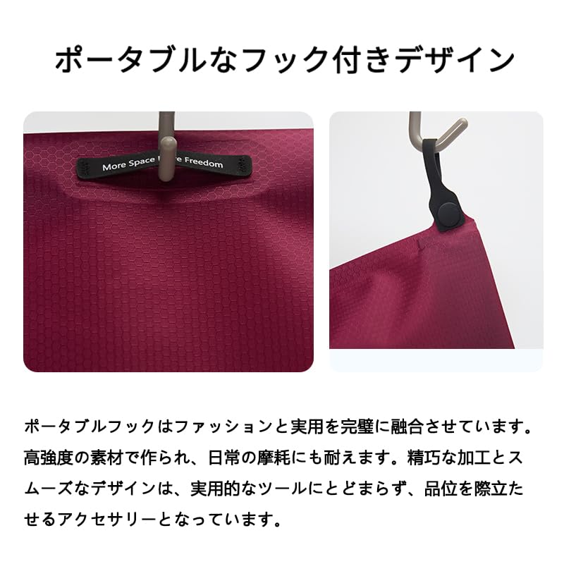 【吊り下げフック付】Bee Nesting のトイレタリーバッグは、中央と隅に頑丈な吊り下げフックが装備され、壁などに簡単に掛けられ、ちょっとしたスペースを効果的に活用でき、物の出し入れも便利です