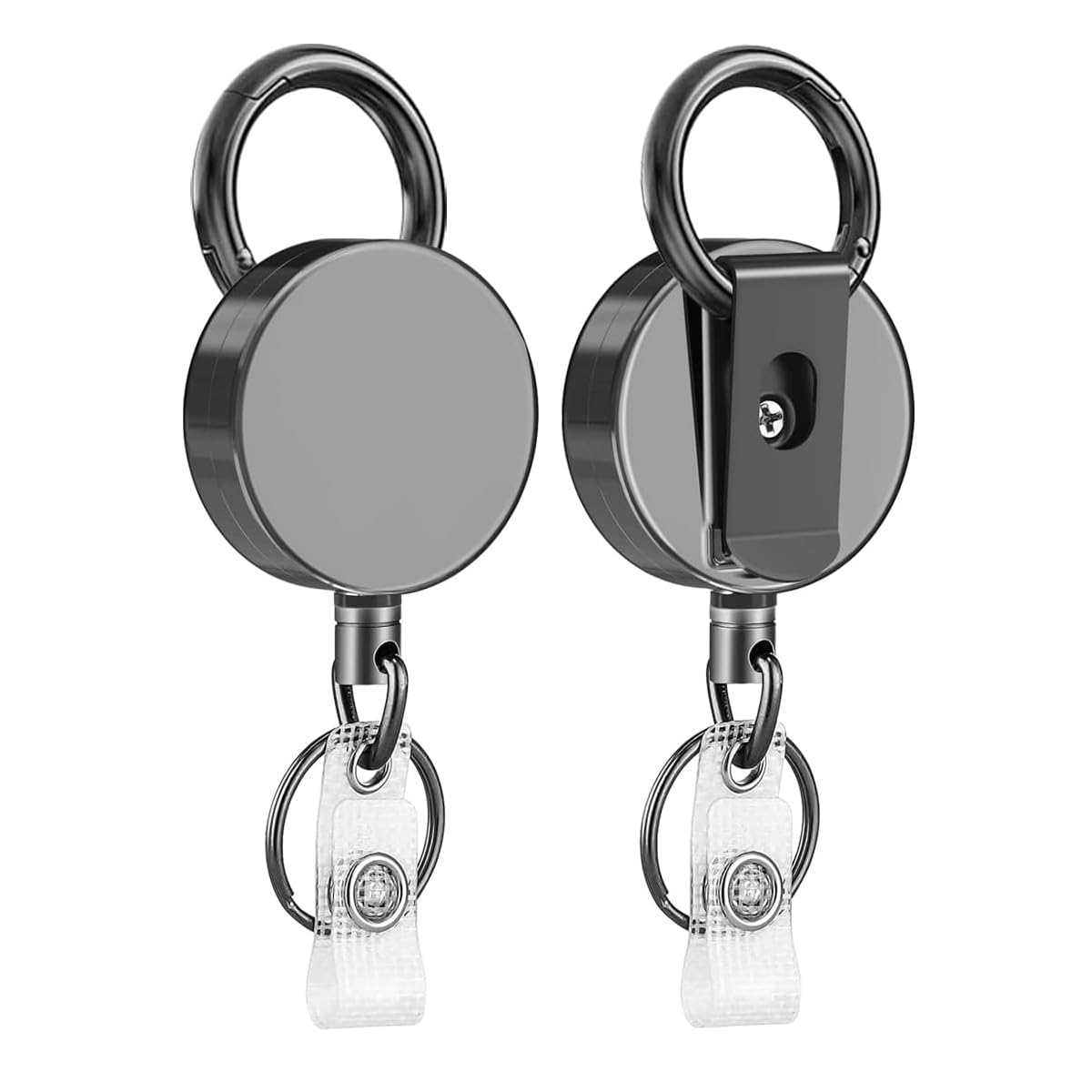 セット内容:カラビナ式リールキーホルダー2個セット、丈夫な金属ワイヤー仕様で安心の品質
