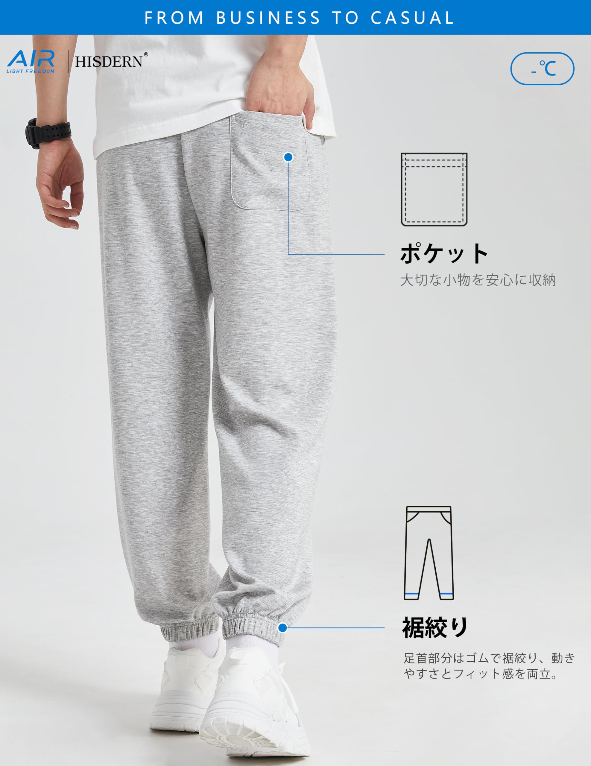 [HISDERN] 302Air「着回し力」ドレープ感 着心地良い スウェットパンツ メンズ 軽量 部屋着 トレーニングウェア ジョガーパンツ ゆったり オールシーズン対応
