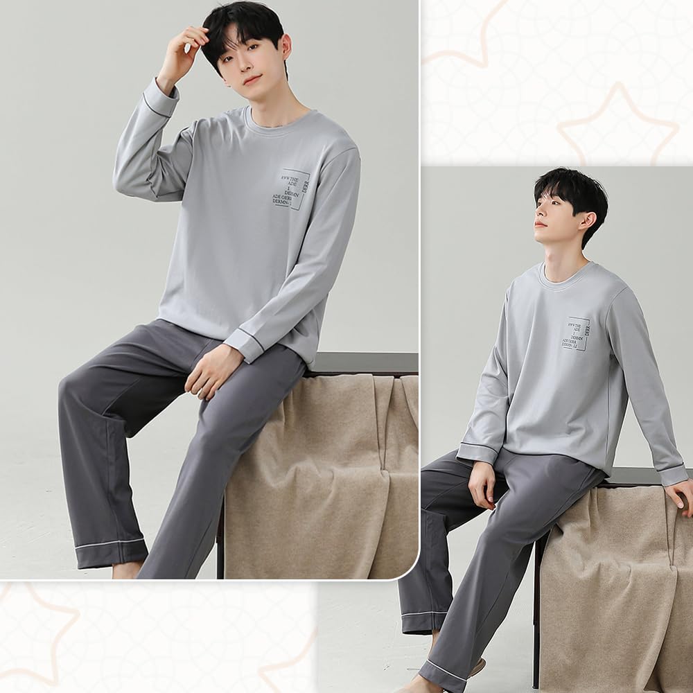 [Akihee] パジャマ メンズ 綿100% 長袖 コットン 春夏秋 上下セット ルームウェア かわいい 吸汗通気 肌に優しい 寝間着 部屋着 柔らかい 快適