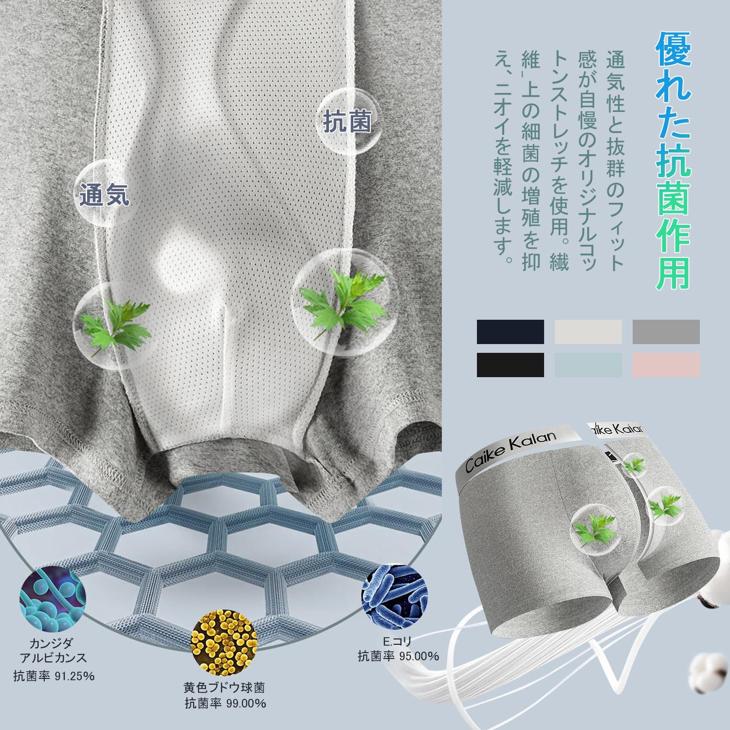【素材】コットン95%、スパンデックス5%;柔らかでしなやかな肌触りの超長綿、肌にやさしい快適ボクサーパンツです。季節問わず爽快な履き心地を実現しました。