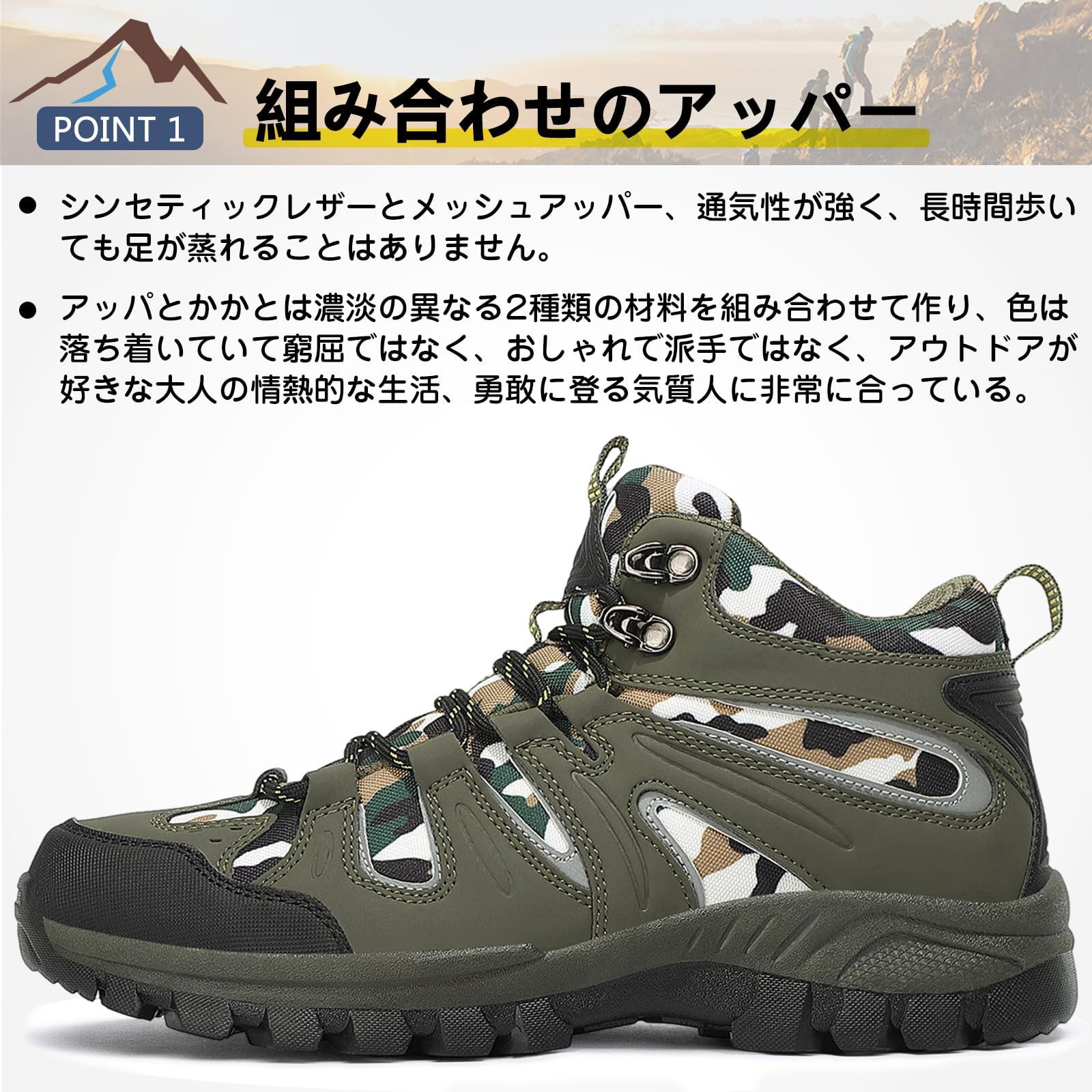 [MERPHINE] トレッキングシューズ メンズ 登山 靴 キャンプ 山登り ハイキングシューズ アウトドアシューズ ミドルカット ハイカット おしゃれ 初心者 軽量