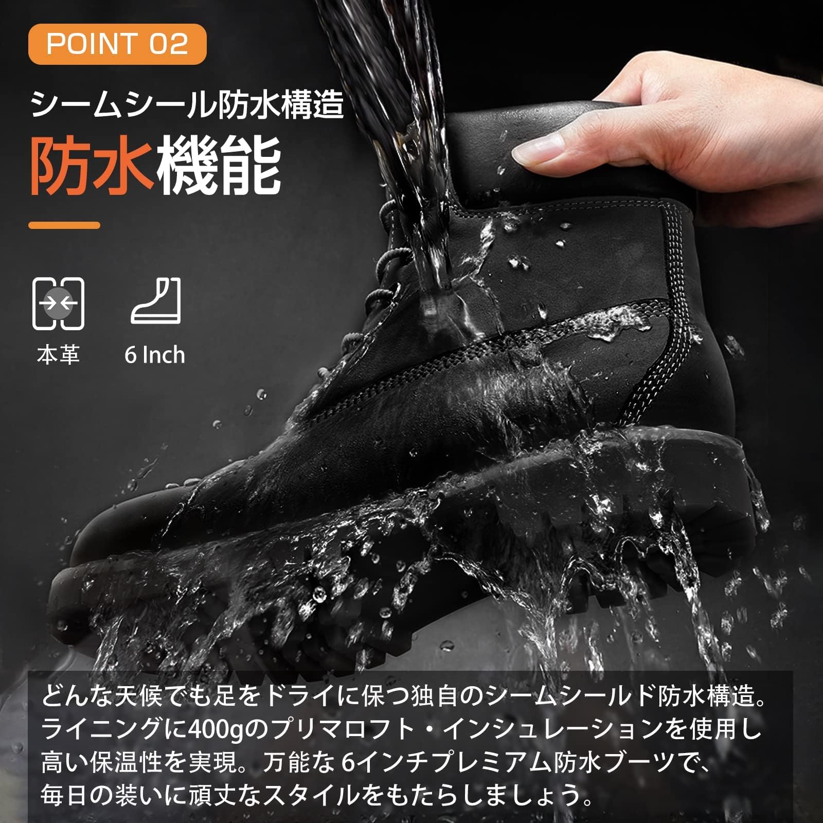 【整った密集の縫い目】長年にわたる職人が積み重ねてきた熟練の手業で仕上げました。縫い目が密集かつバランスよく整列されて丈夫さが一層増します。万能な 6インチプレミアム防水ブーツで、毎日の装いに頑丈なスタイルをもたらしましょう