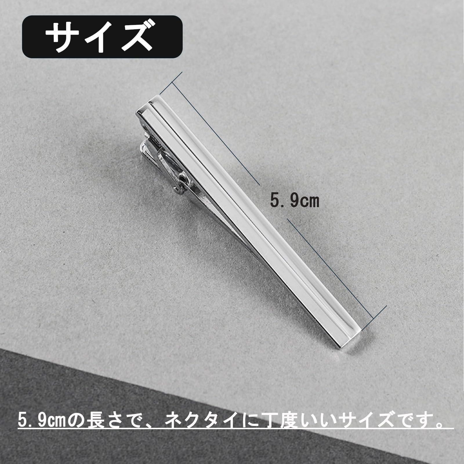 【サイズと素材】さびにくい真鍮を使用し、丈夫で抜群な光沢感を持つ、高級感があるネクタイピンです。5.9㎝の長さで、ネクタイに丁度いいサイズです。