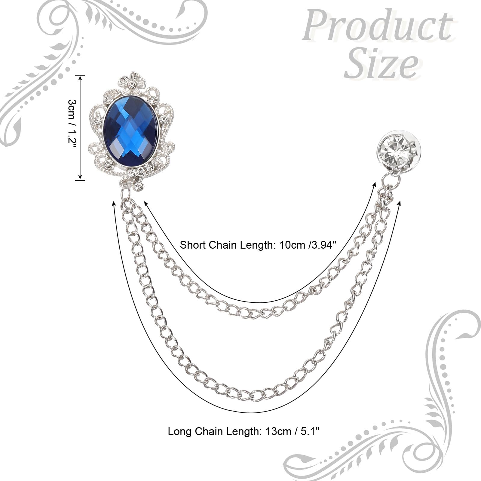 仕様:カラー:シルバー(ブルー);素材:合金、ラインストーン;ジェムサイズ:3x22cm / 1.2x8.7"(縦×横);長いチェーンの長さ:13cm / 5.1";短いチェーンの長さ:10cm / 3.9";パッケージリスト:ジェムハンギングチェーンブローチピン1本
