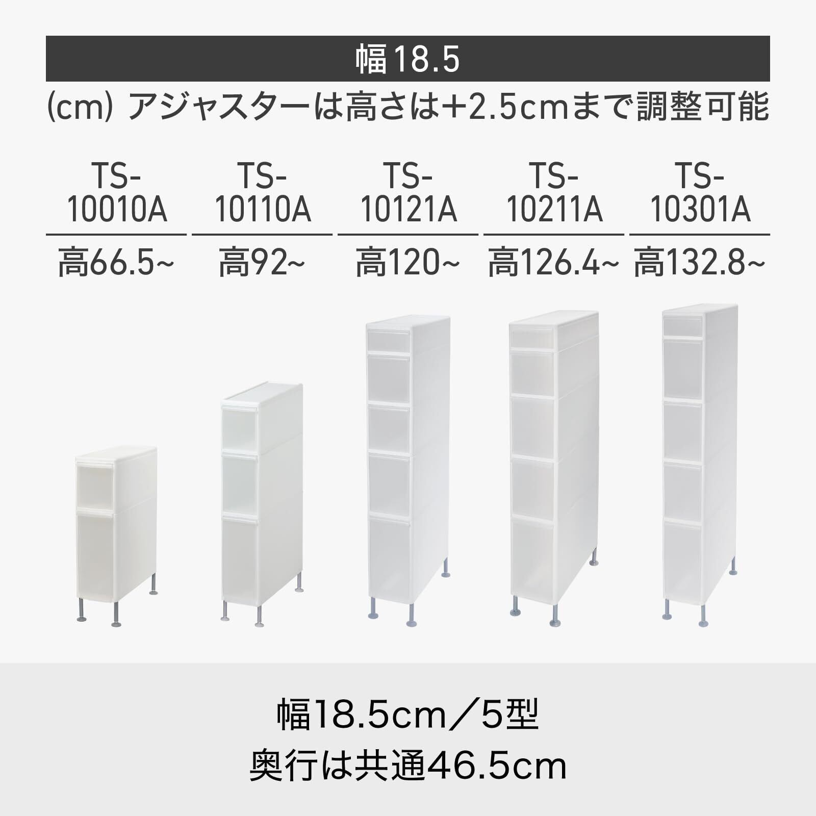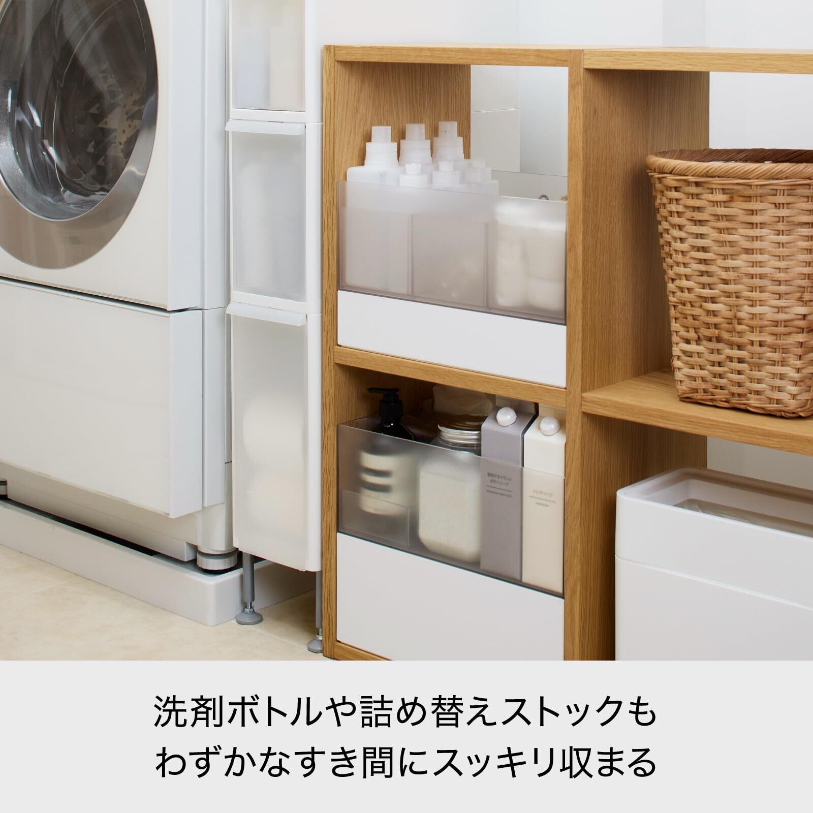 ライクイット (like-it) ランドリー 収納 すき間 引出し スリム 3段 (着脱式アジャスター付) 約幅18.5×奥46.5×高92~94.5cm ホワイト 日本製 TS-10110A 洗濯機横で使える 引き出し 省スペース