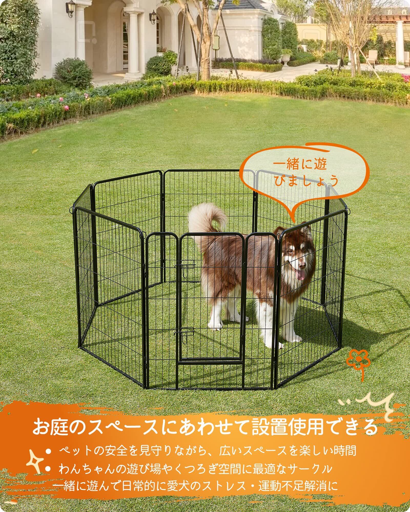 FEANDREA 犬 サークル 中大型犬用 ペットフェンス スチール製 全成長期使用可 室内外兼用 折り畳み式 組立簡単 ペットサークル パネル8枚 複数連結可能 犬 ゲージ PPK81H 高さ100cm