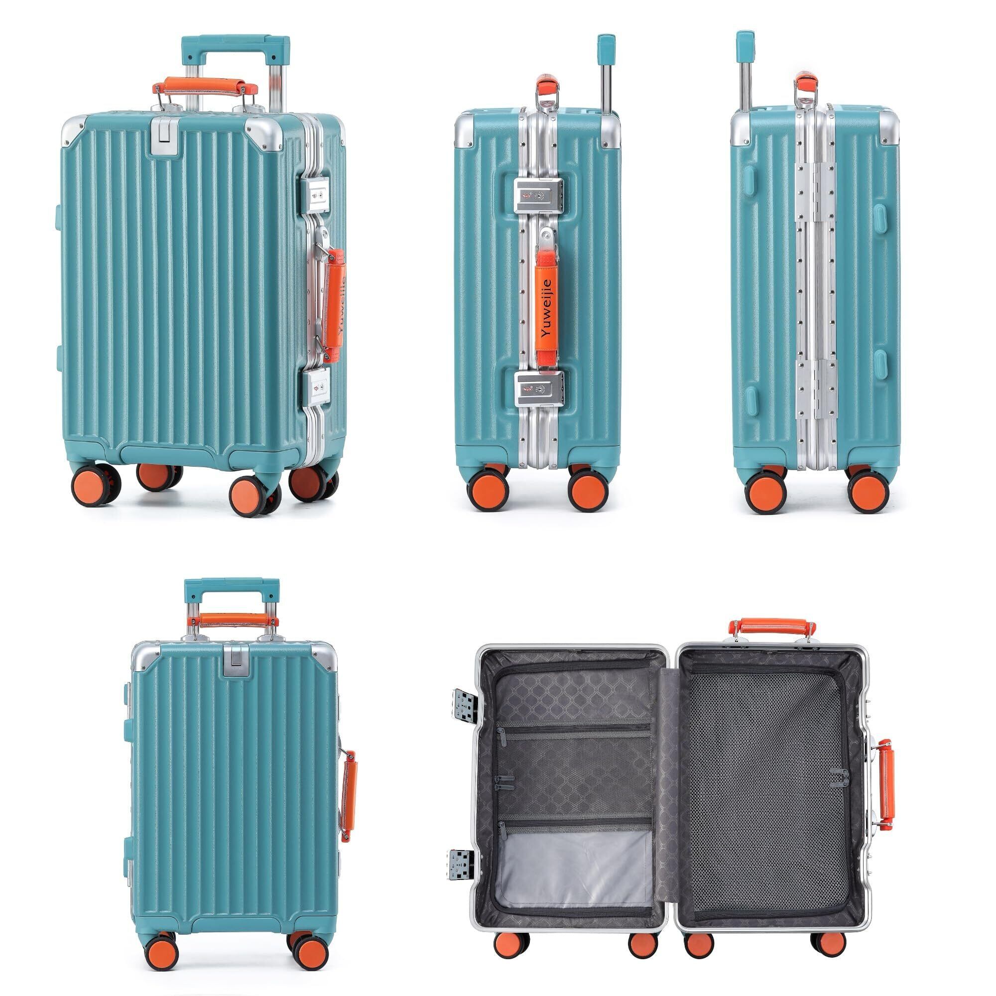新感覚!モダン!スーツケース キャリーケース 機内持ち込み 大型 軽量アルミフレーム式 キャリーバッグ 静音 ダブルキャスター TSAロック レトロ おしゃれなハンドル 疲れない設計 入学 海外旅行出張 Mサイズ ブルー 4-6泊 55L