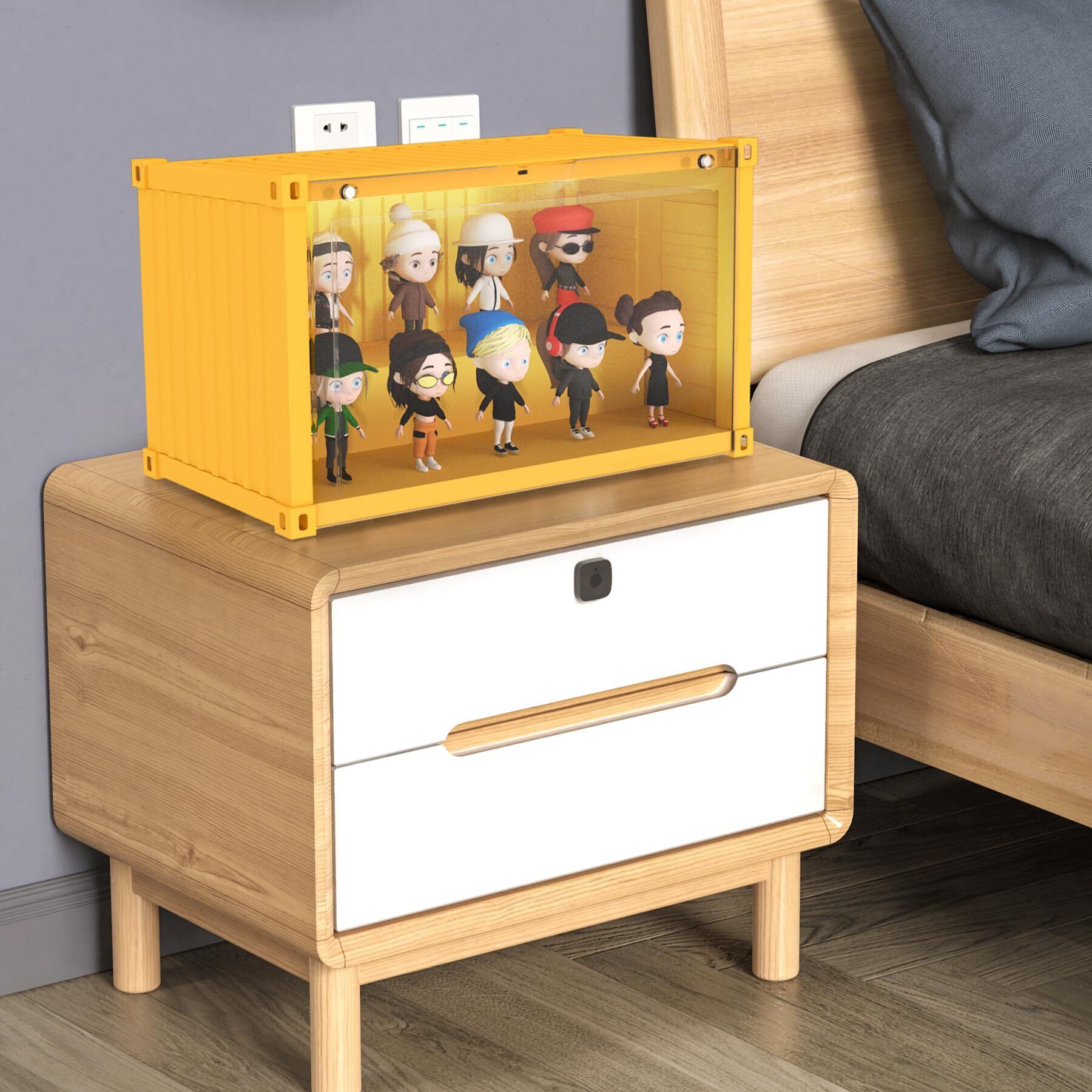 フィギュアケース LED コレクションケース マグネット式扉 前開き シ フィギュアケース 棚 ショーケース 23.5x12.2x14.3cm テーブルトップ ディスプレイケース コレクション棚 輸送コンテナスタイル フィギュア ケース (黄色-S)