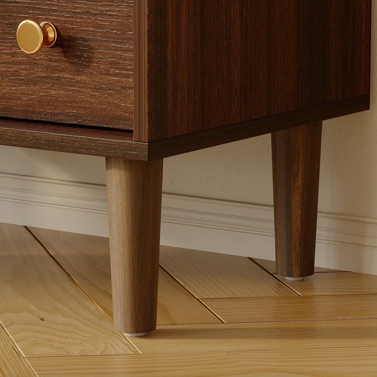 【やさしい木目と低ホルム素材で安心の使い心地】本体にはE0級1.5cm厚の低ホルムアルデヒド刨花板を使用しており、日常使いに安心。表面は耐摩耗加工で傷がつきにくい仕様です。落ち着いたウォルナット調の木目が、インテリアに柔らかな高級感を添えます。