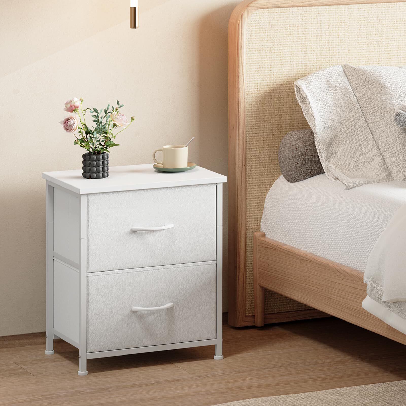 Somdot チェスト 2段 引き出し ベッドサイドテーブル ナイトテーブル 収納ボックス 洋服収納 リビング 幅40 スリム サイドチェスト おもちゃ箱 ソファー横 一人暮らし ホワイト