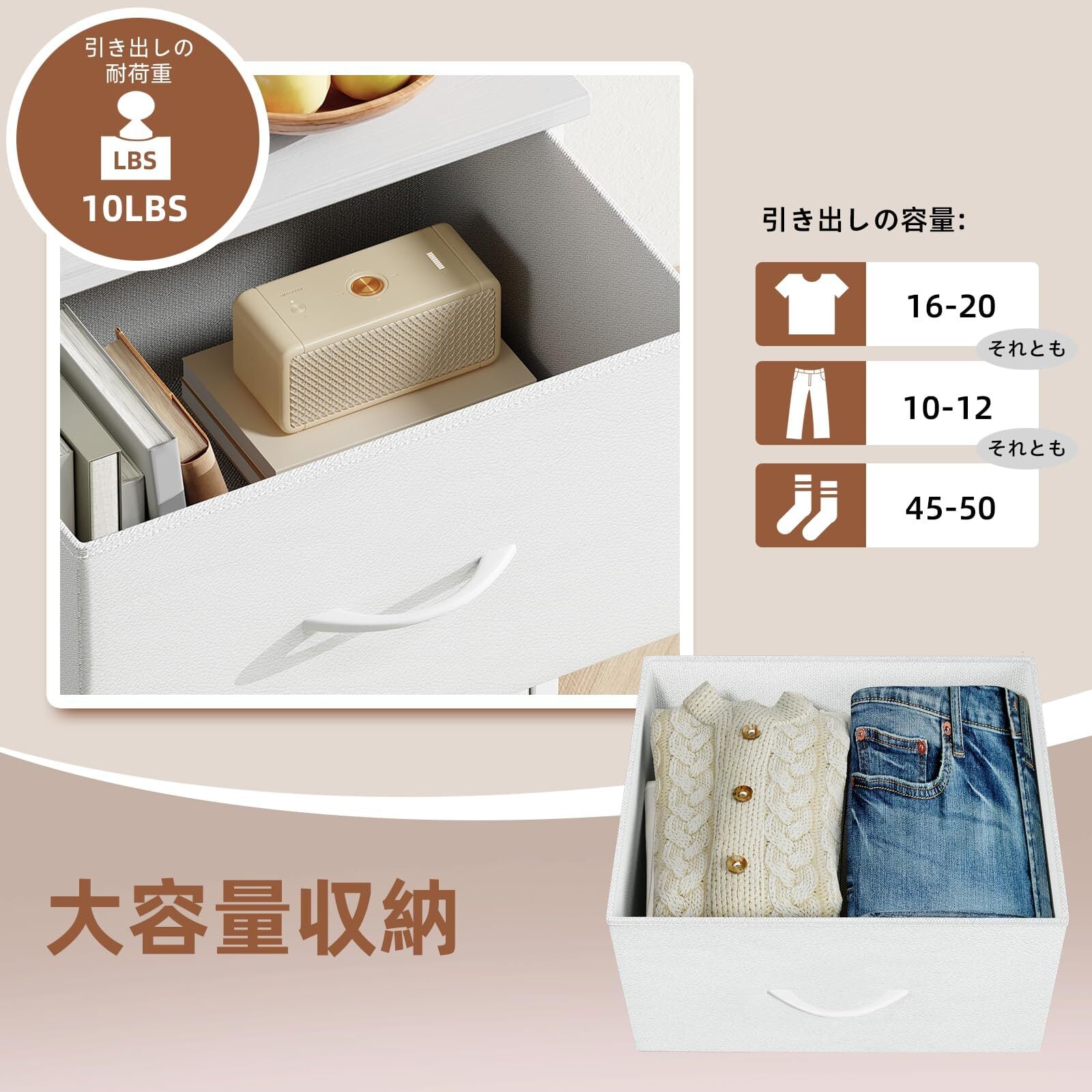 【おしゃれで部屋に彩る】シンプルかつコンパクトなデザインのため、どんな部屋でもナチュラルに溶け込みます。二つの引き出しに分けますので、日常生活の使用に便利です。洋服やおもちゃなどのものを一括収納!収納ケースには取ってがあるので、開閉もスムーズに!弊店のほかのサイズの収納チェストとの組み合わせがおすすめです。