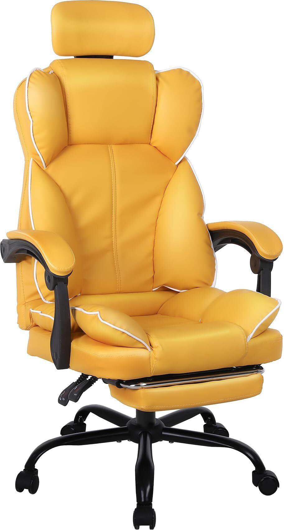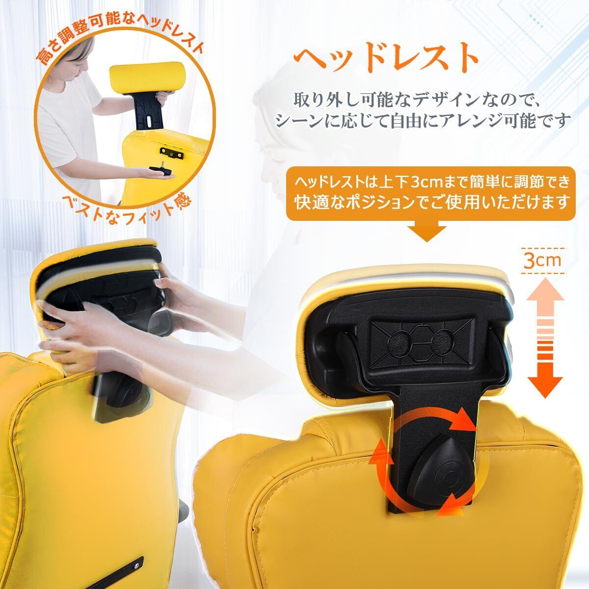 JKOOK ゲーミングチェア 座り心地いい 大座面 ソファ椅子 デスクチェア オフィスチェア 学習椅子 おしゃれ 厚め座面 包まれ感 集中力追求 座り心地 PUレザー (黄色)