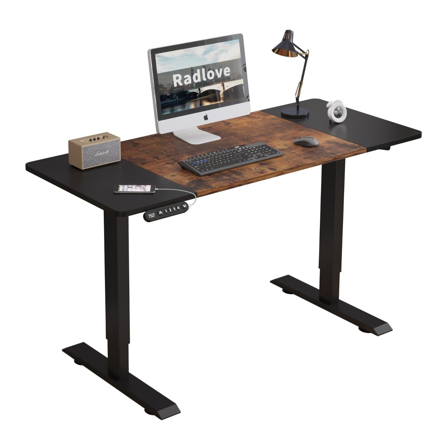 Radlove デスク 昇降式 パソコンデスク ゲーミングデスク 机 電動昇降式スタンディングデスク パソコンラック PCデスク つくえ 高さ調節可能 高さ調節メモリー機能付き 幅140CM×奥行60CM 高さ69~115CM (ブラウン)