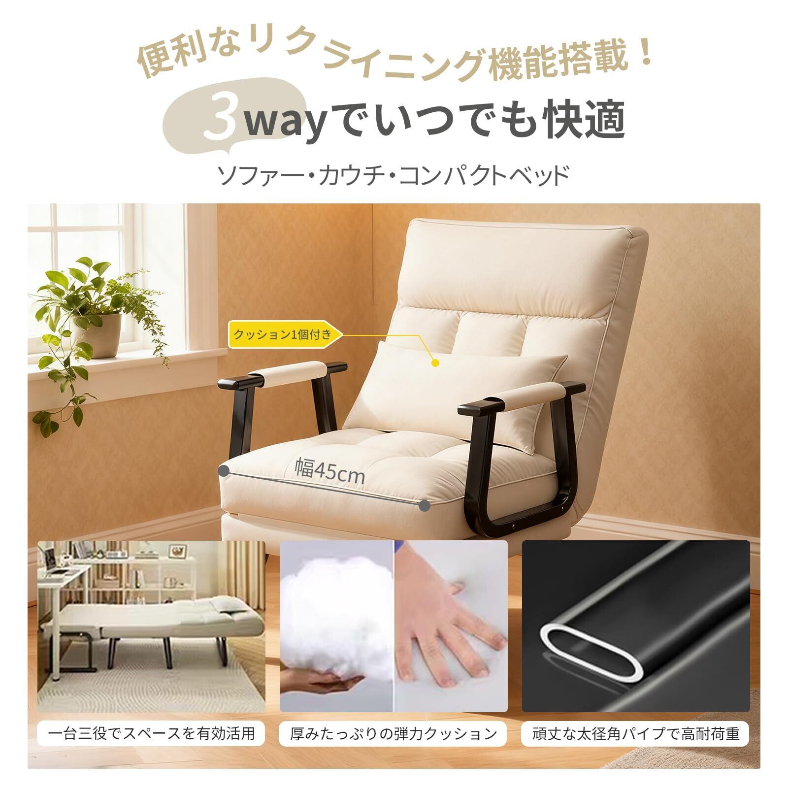 ソファー ソファーベッド 折りたたみ 一人暮らし 高反発ウレタン リクライニング レザー調 3way コンパクト 洗えるカバー 傷がつきにくい 丈夫 リビング 寝室 1人掛け おしゃれ ホワイト 幅65cm カーキ