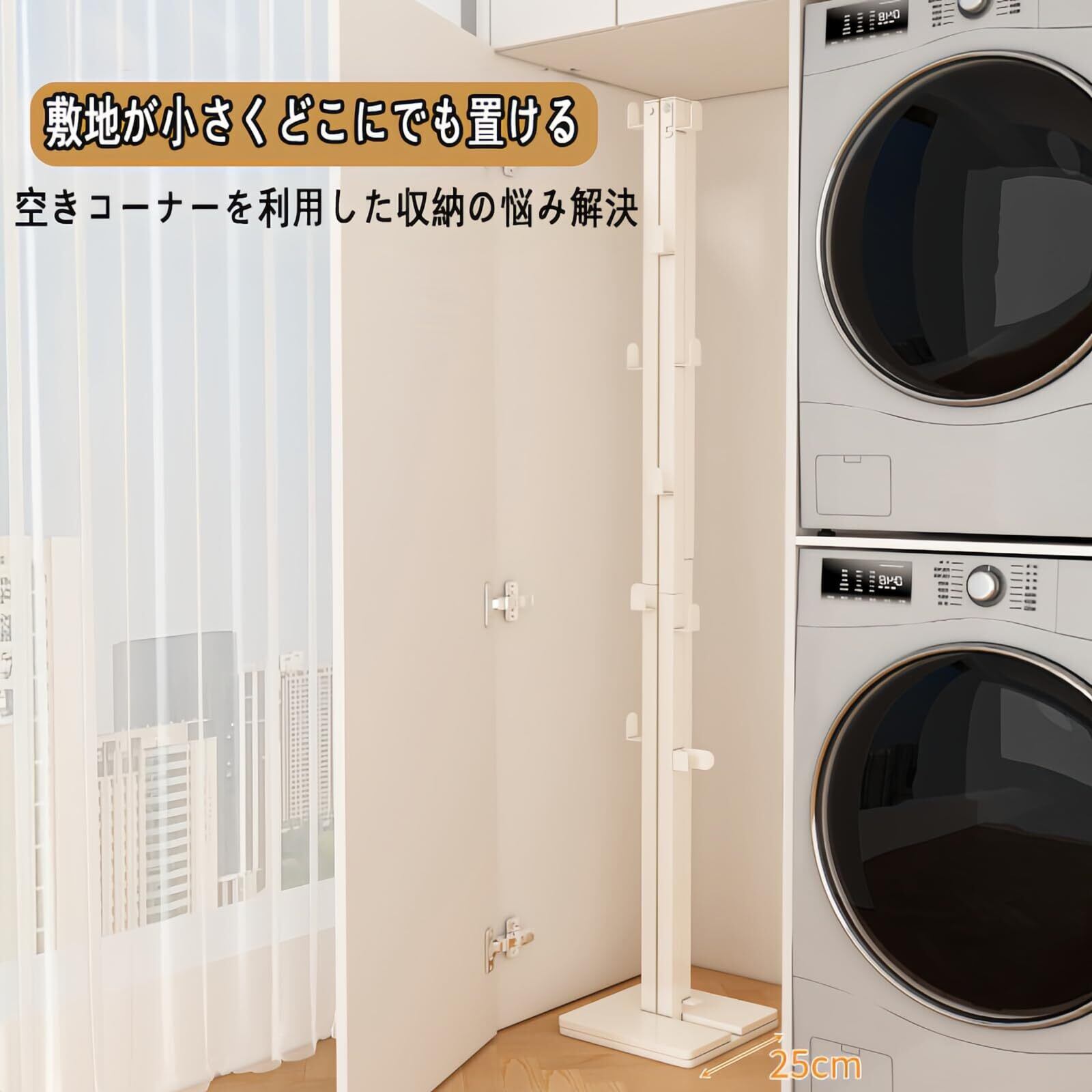 【伸縮&折りたたみで場所を取らない】:使用時約W80-158×D25×H160cmで、服20枚以上も干すことができるので、洋服の量が多い日でも安心して使用できます。また、布団を干すにも十分な長さで用途が広いです。使用しない時はコンパクトに折りたたんで収納できるため、狭いお部屋やベランダでも邪魔になりません。省スペース設計で、マンション住まいの方に特におすすめです。