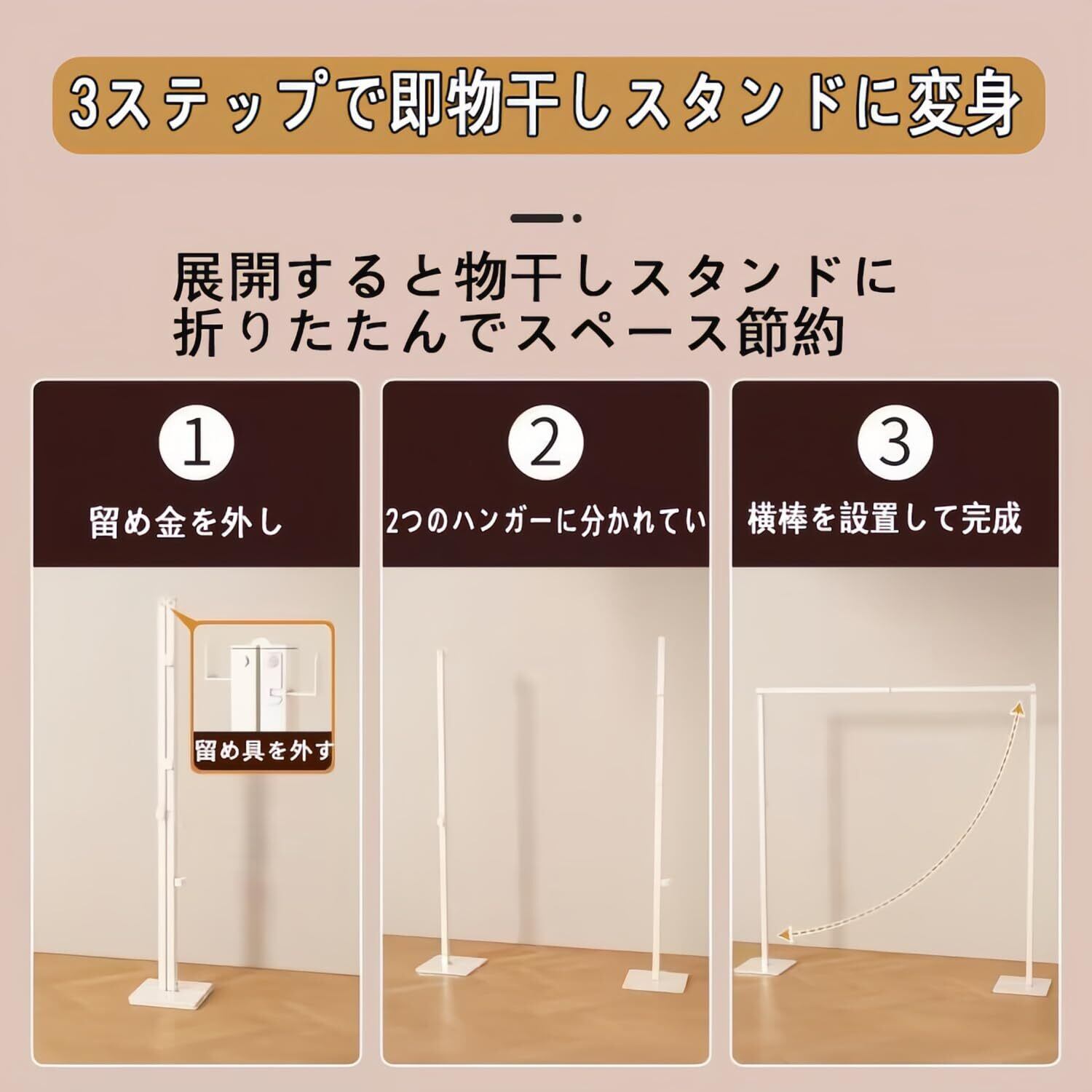 【梅雨の季節や寝室干しに最適】:天気に左右されずに室内で洗濯物を乾かせるため、梅雨時や花粉が気になる季節、冬季の部屋干しに大活躍します。ベランダ使用はもちろん、リビングや浴室、寝室など、ご家庭の様々なシーンでお使いいただけます。