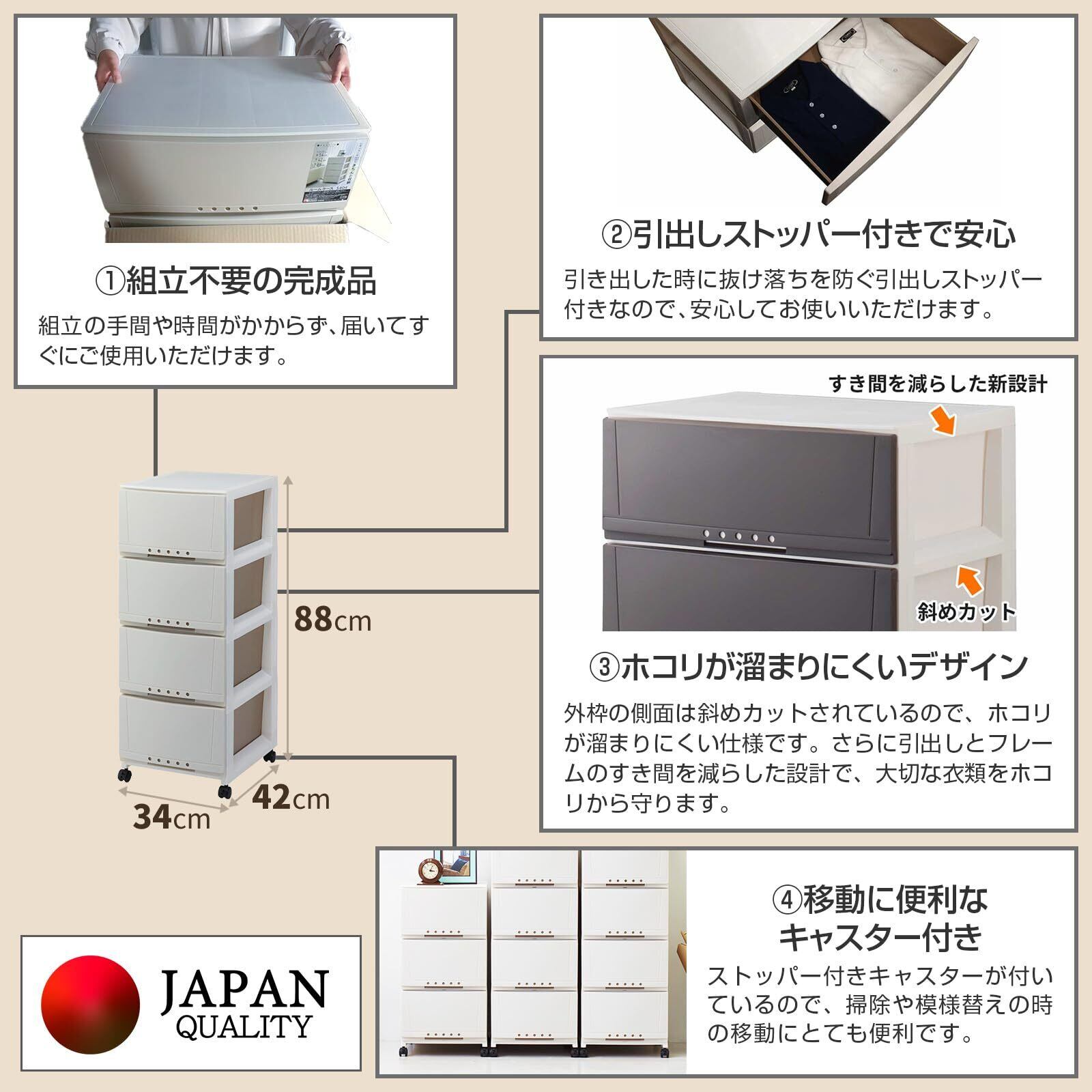 天馬(Tenma) シーンを選ばず使える収納チェスト 日本製 完成品 ルームケース 4段 キャスター付きで移動が簡単 引出しロック付きで抜け落ちを防ぐスムーズな引出し タンス 収納ケース 衣装ケース プラスチック