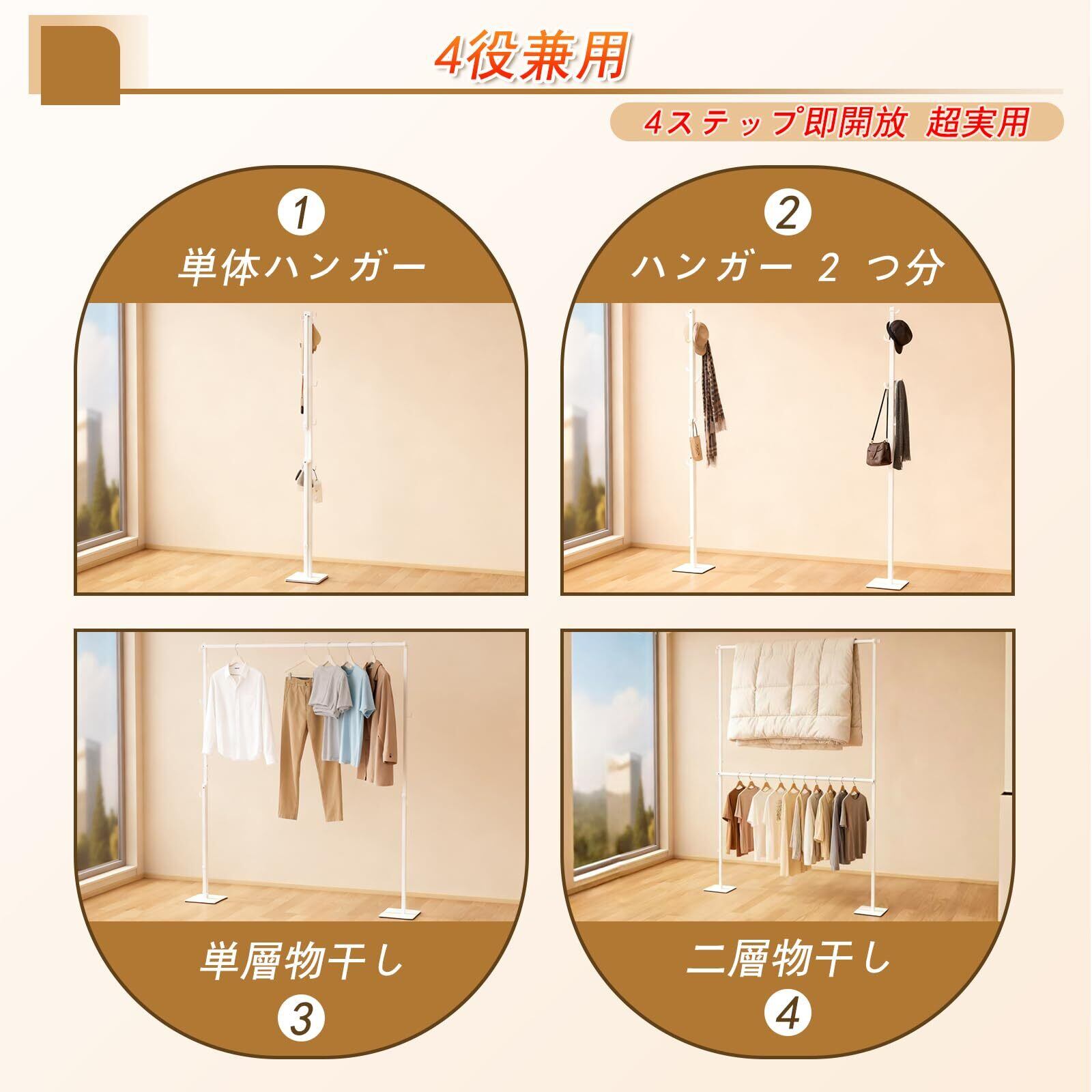 [多機能 4 役兼用] 単体ハンガー、2 つのハンガー、単層物干し、二層物干しとして使い分けられ、ニーズに応じて 4 ステップで即座に使い方を切り替えられる超実用的なアイテムです。