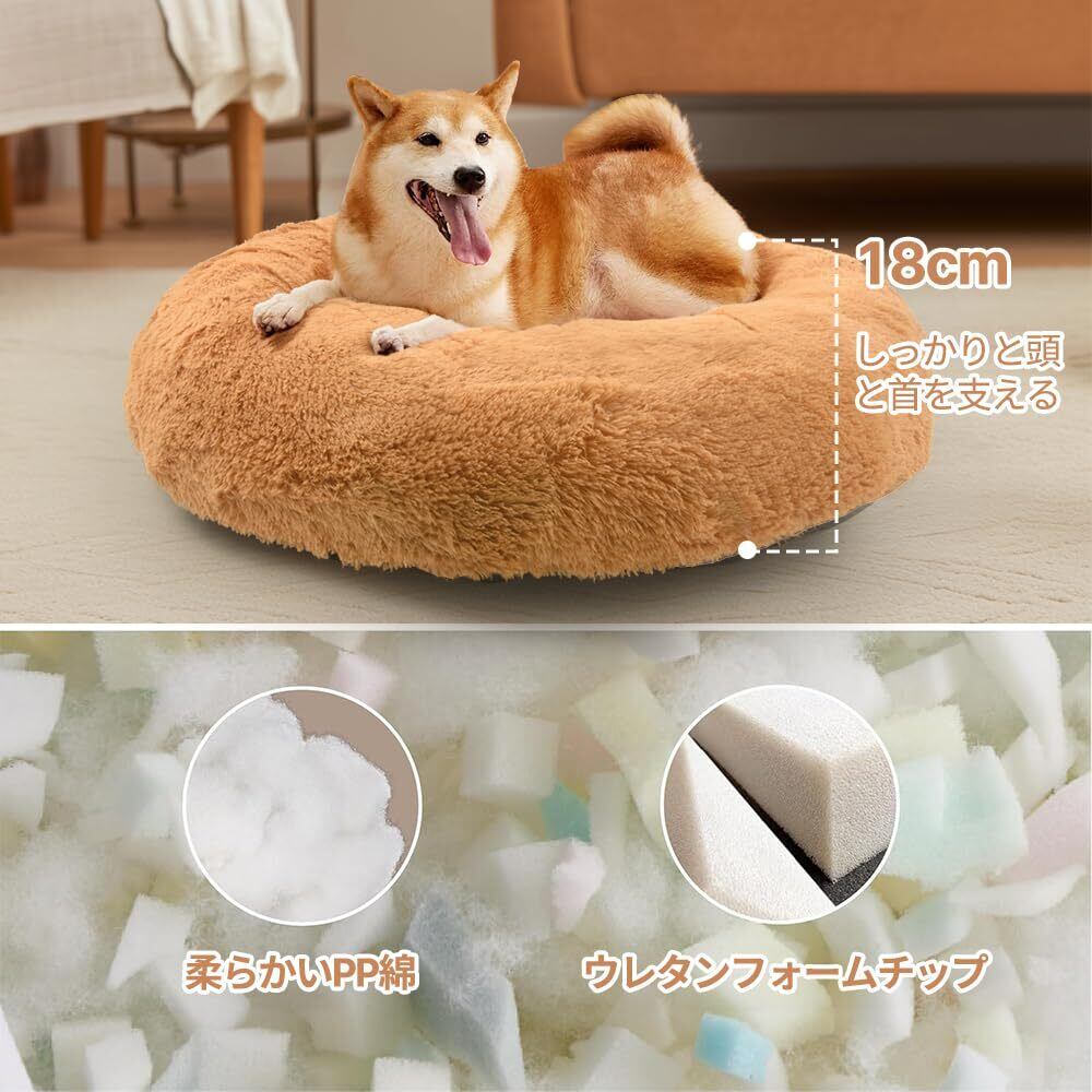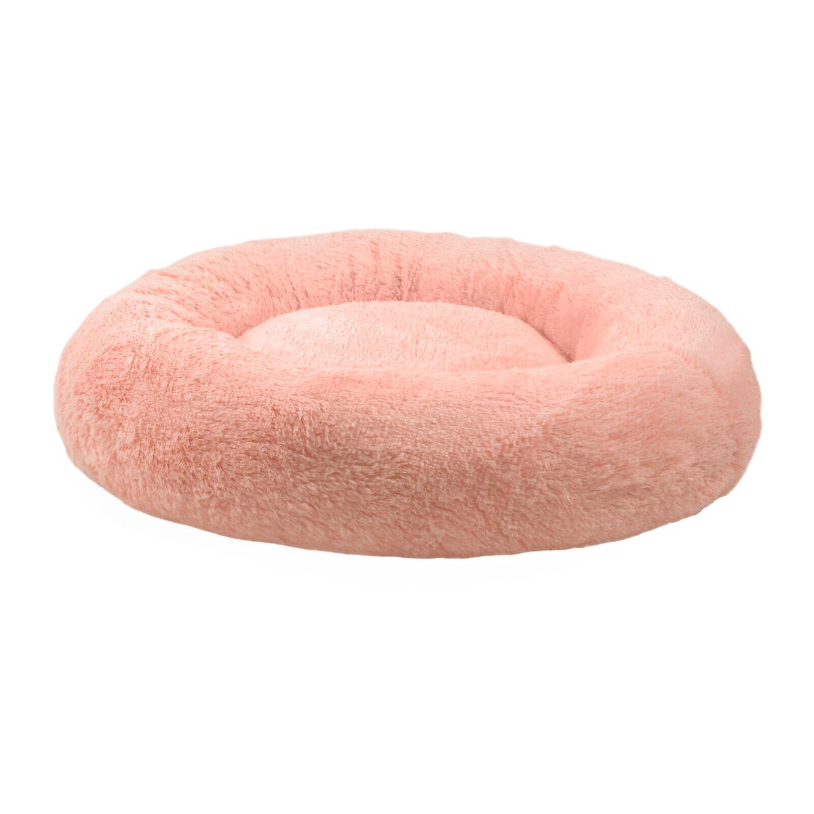 JEMAジェマ 犬ベッド猫ベッド ペットベッド 秋冬用 ふわふわ 丸型 クッション ドーナツペットベッド ラウンド型 ぐっすり眠る 中型猫用 中型犬用 もこもこ 暖かい 滑り止め付き 冷房対策 防寒 寒さ対策 洗濯機洗い可 取り外し可能なカバー 直径約76cm ピンク