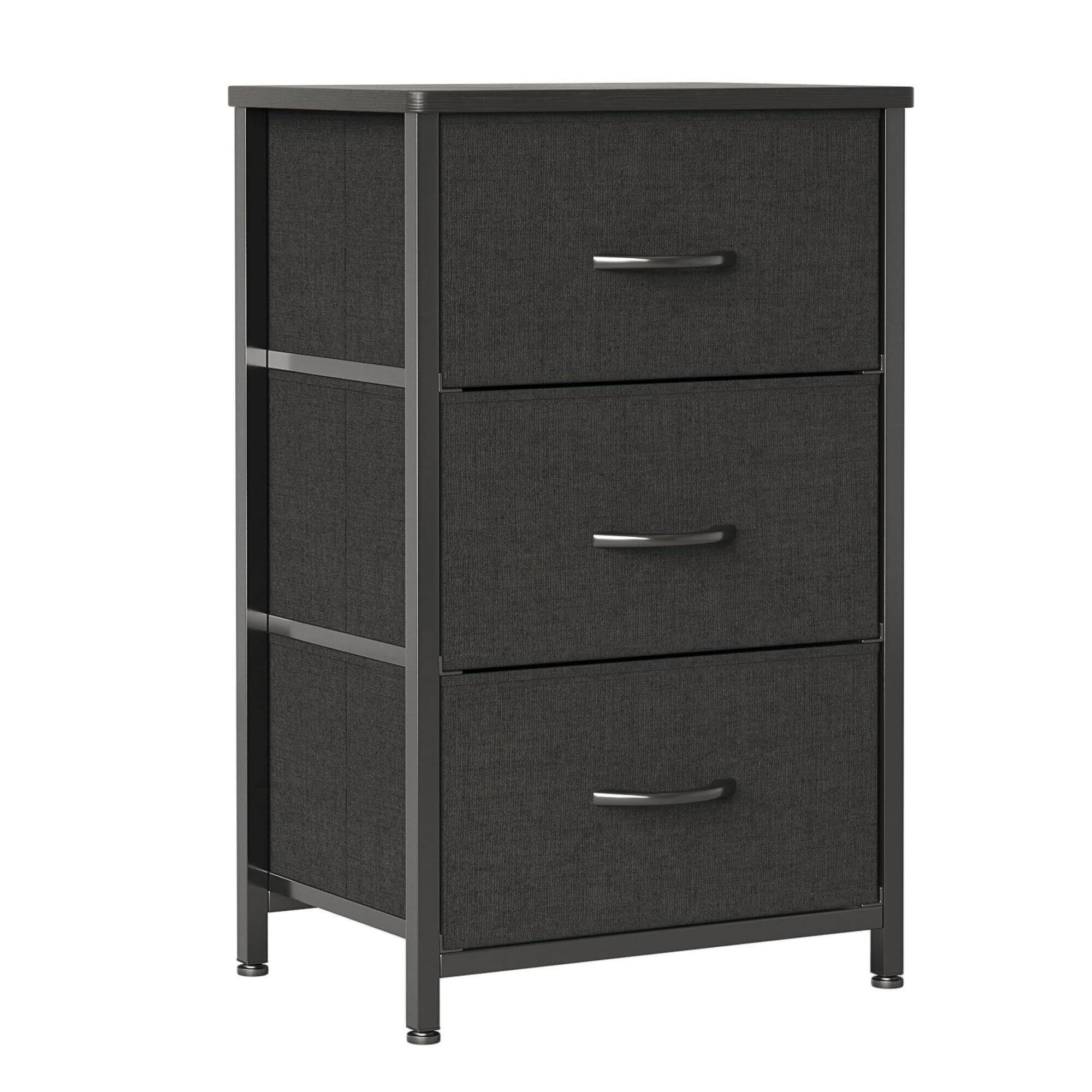 Mexin チェスト タンス 箪笥 収納ケース リビング収納 布製引き出し 衣類収納 木製天板 3段ブラック