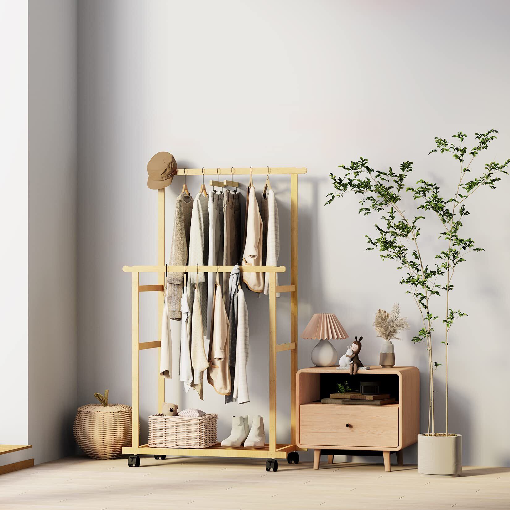 【安全感抜群】高品質な天然竹を使用しており、環境に優しく、耐久性にも優れているハンガーラックです。竹材は丈夫でしなやかで、日常的な使用でも長くお使いいただけます。耐荷重は20kgもあり、安全性の確保と長期的な快適さを維持できます。季節を選ばず沢山の衣類を掛けることができます。収納用にオールシーズン使用したい人や衣装持ちの人におすすめです