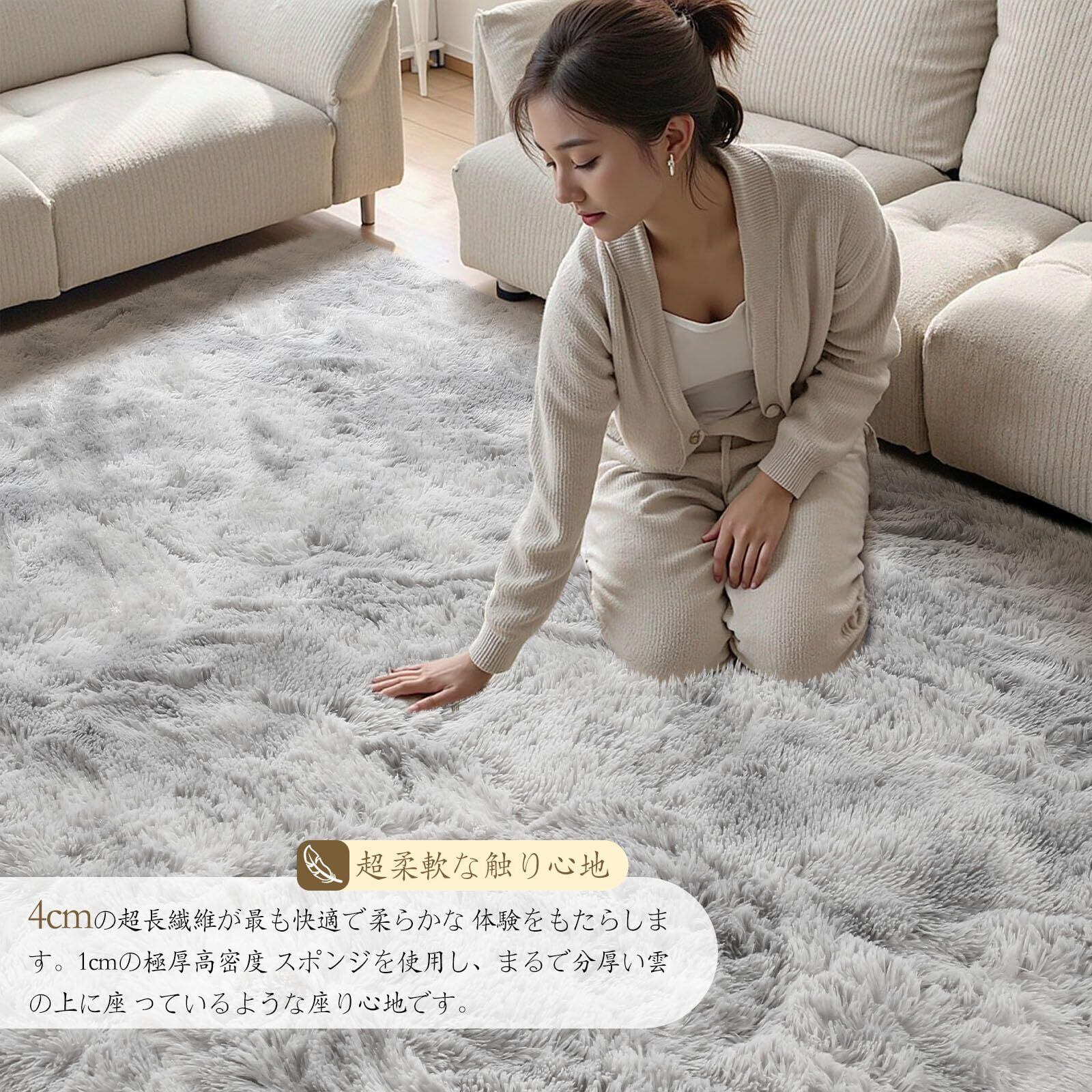 【超ソフトな感触、暖かいです】- 40mmの長い毛足で、極細繊維素材100%で、ふわふわで弾力性にも優れています。100%極細繊維素材をしっかり裁縫されておるため、コロコロでも毛が抜けません。裸足で歩くのに最適で、赤ちゃんの腹ばいの時間にも最適です。このラグは子供やペットに最適です。夏は冷房対策、耐熱合格の試験も実証されたので冬はホットカーペット・床暖房等に対応できます。