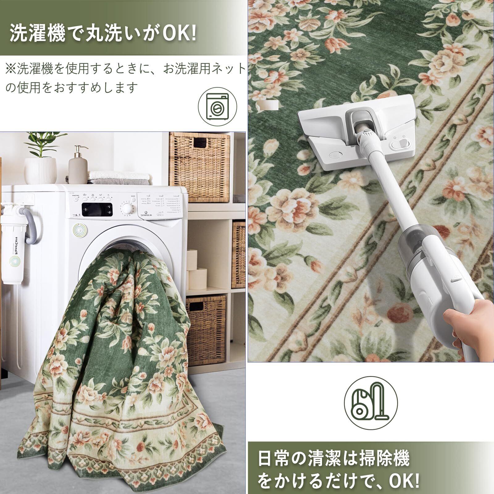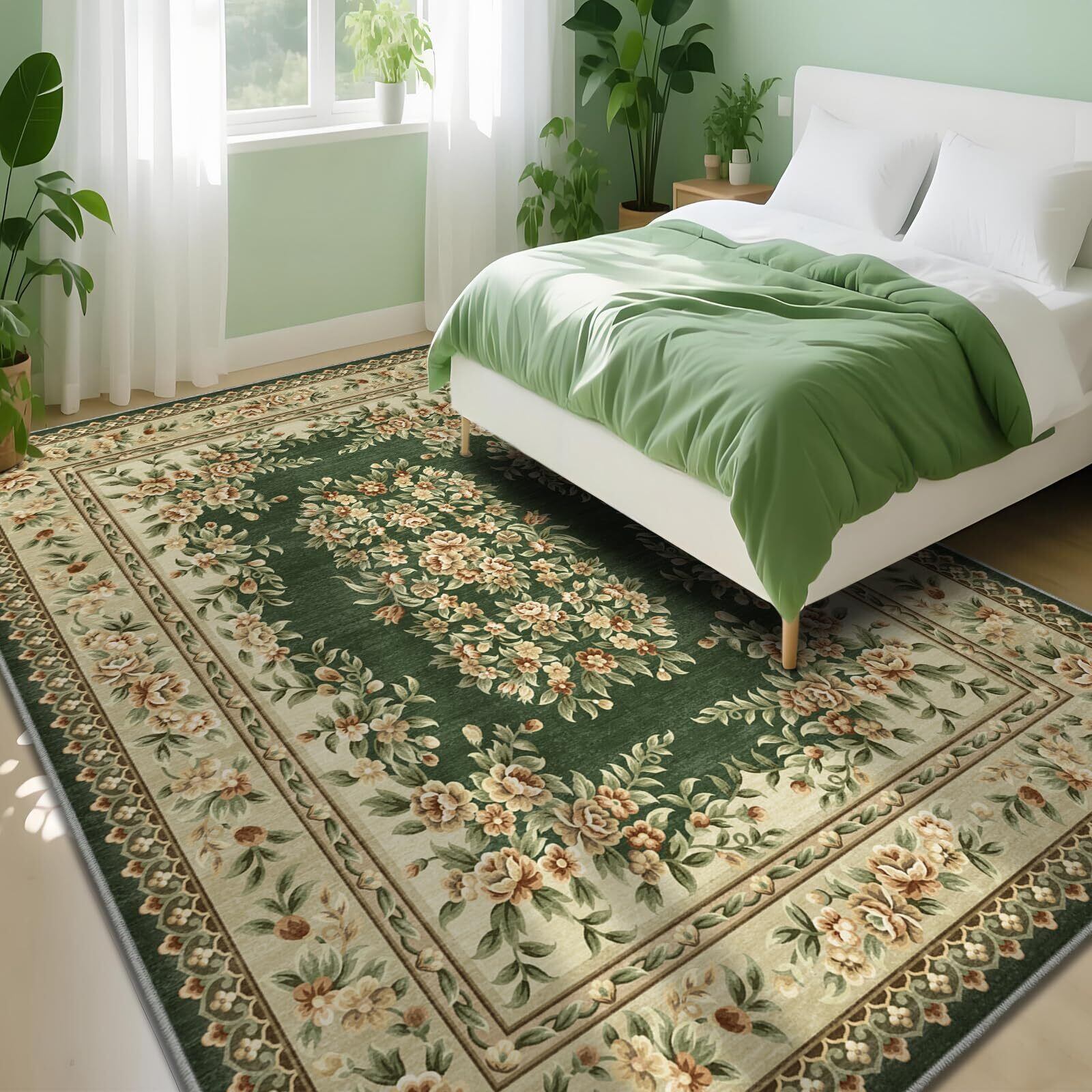 Phonzenuo洗える ラグマット 230×320 グリーン フォーマル 滑り止め 薄手 リビング 書斎 高級 インテリア 床暖房対応