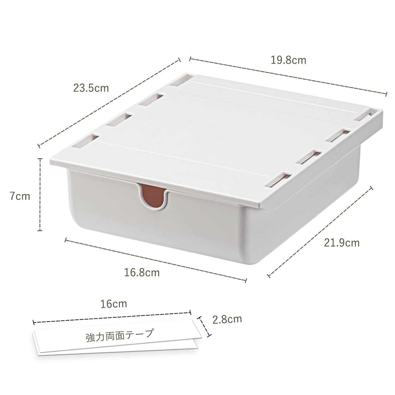 Homdolaser 机下 引き出し 2個セット デスク下 後付け ホワイト 机の下収納 隠し引き出し テーブル裏 スペース活用 スライドトレー 簡単設置 小物入れ 文房具 強力粘着 整理整頓 取り付けできる