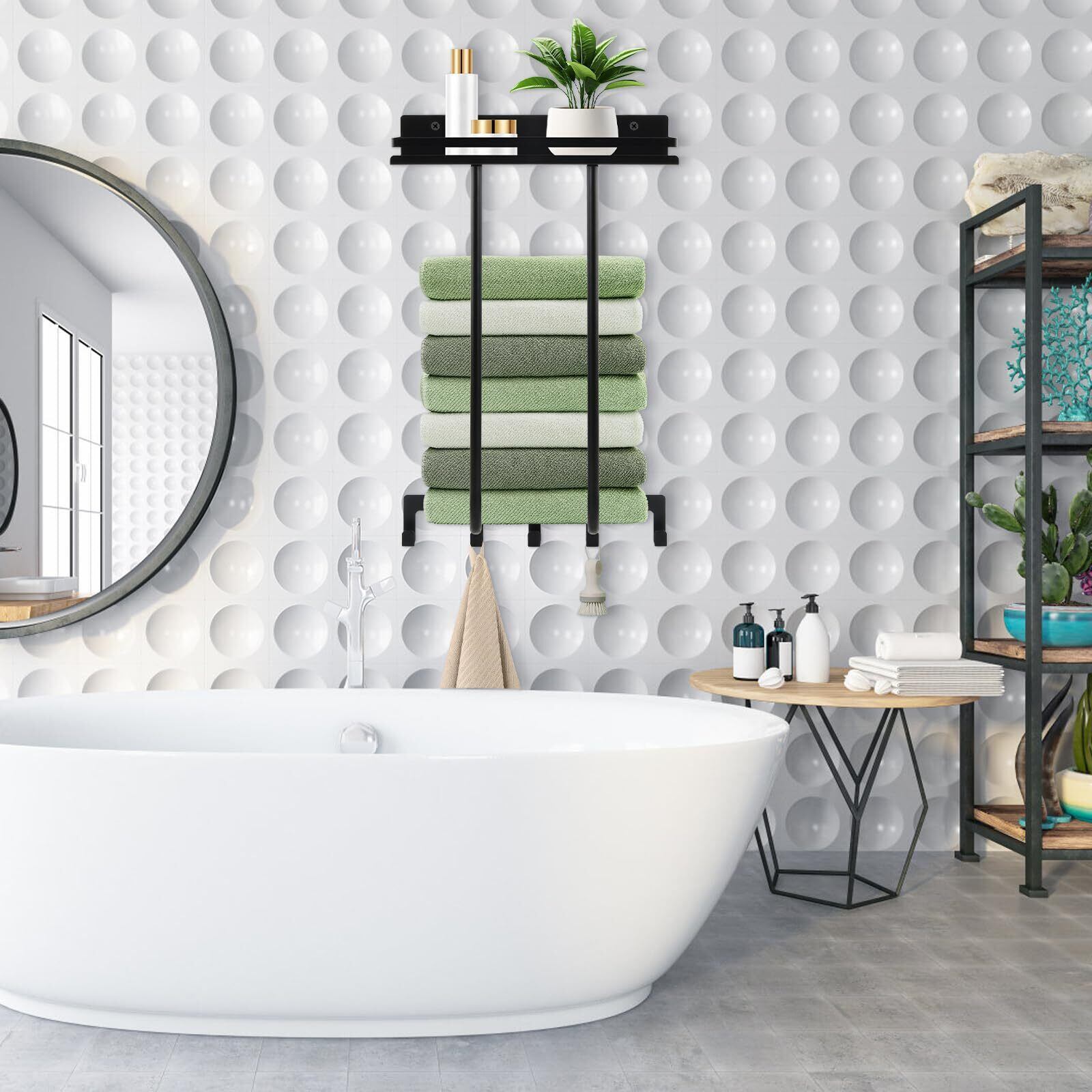 この壁掛け式タオルラックは、省スペースで実用的なバスルームの整理整頓に最適です。耐荷重は最大10kgで、タオル、バスタオル、