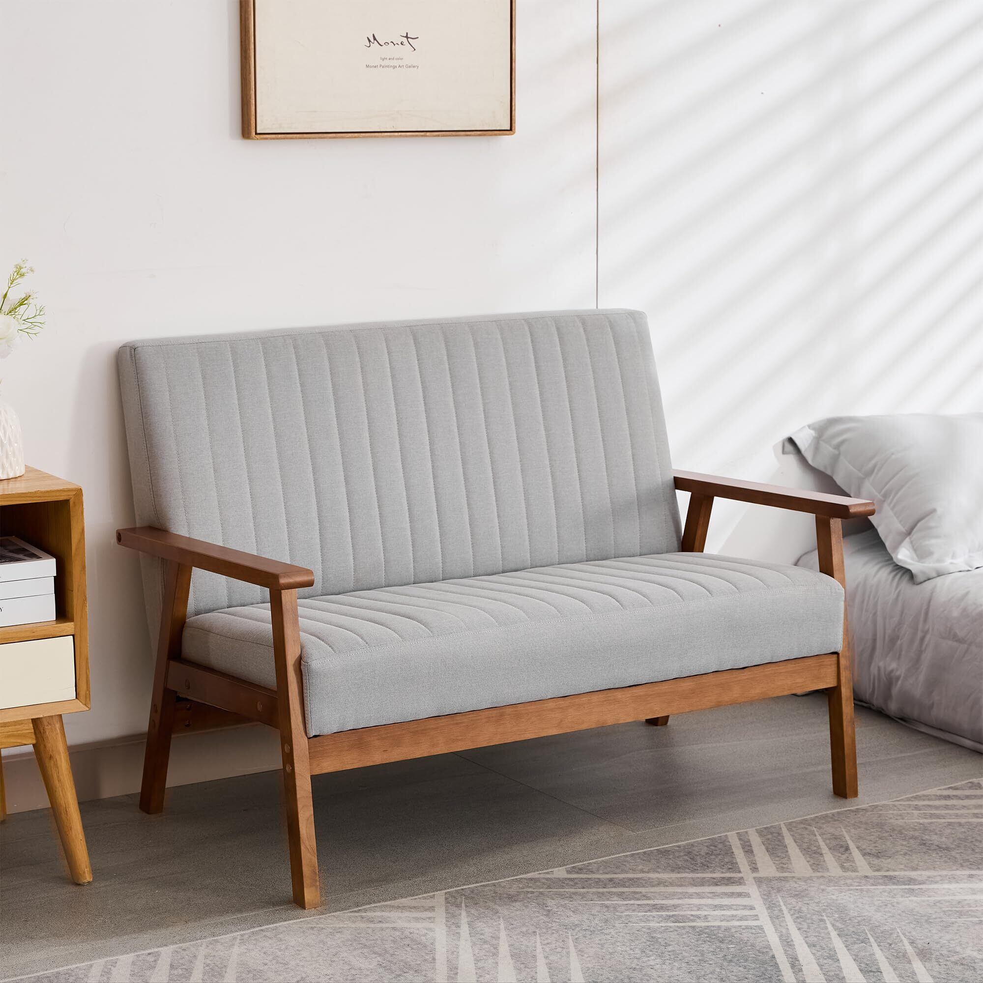 VECELO ソファー 2人掛け 幅112cm 肘掛け おしゃれ 組立簡単 一人暮らし ファブリック コンパクト 木脚 2人掛けソファー 2人用 グレー