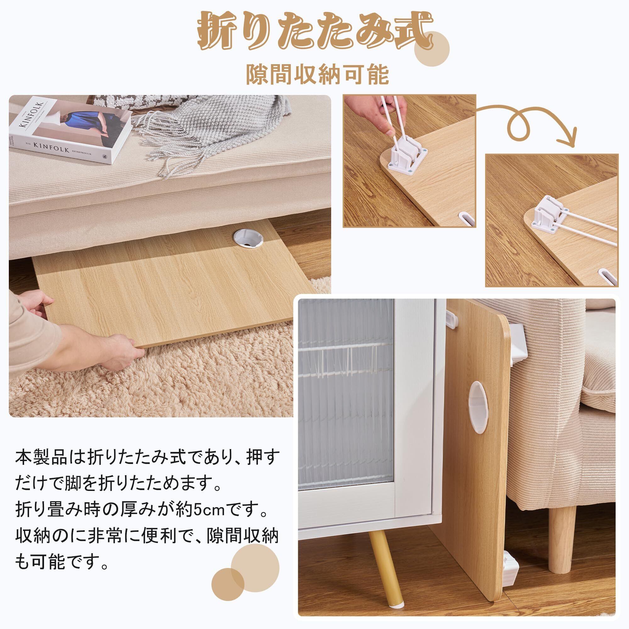 VECELO ローテーブル 折りたたみ式 2つスロット付き