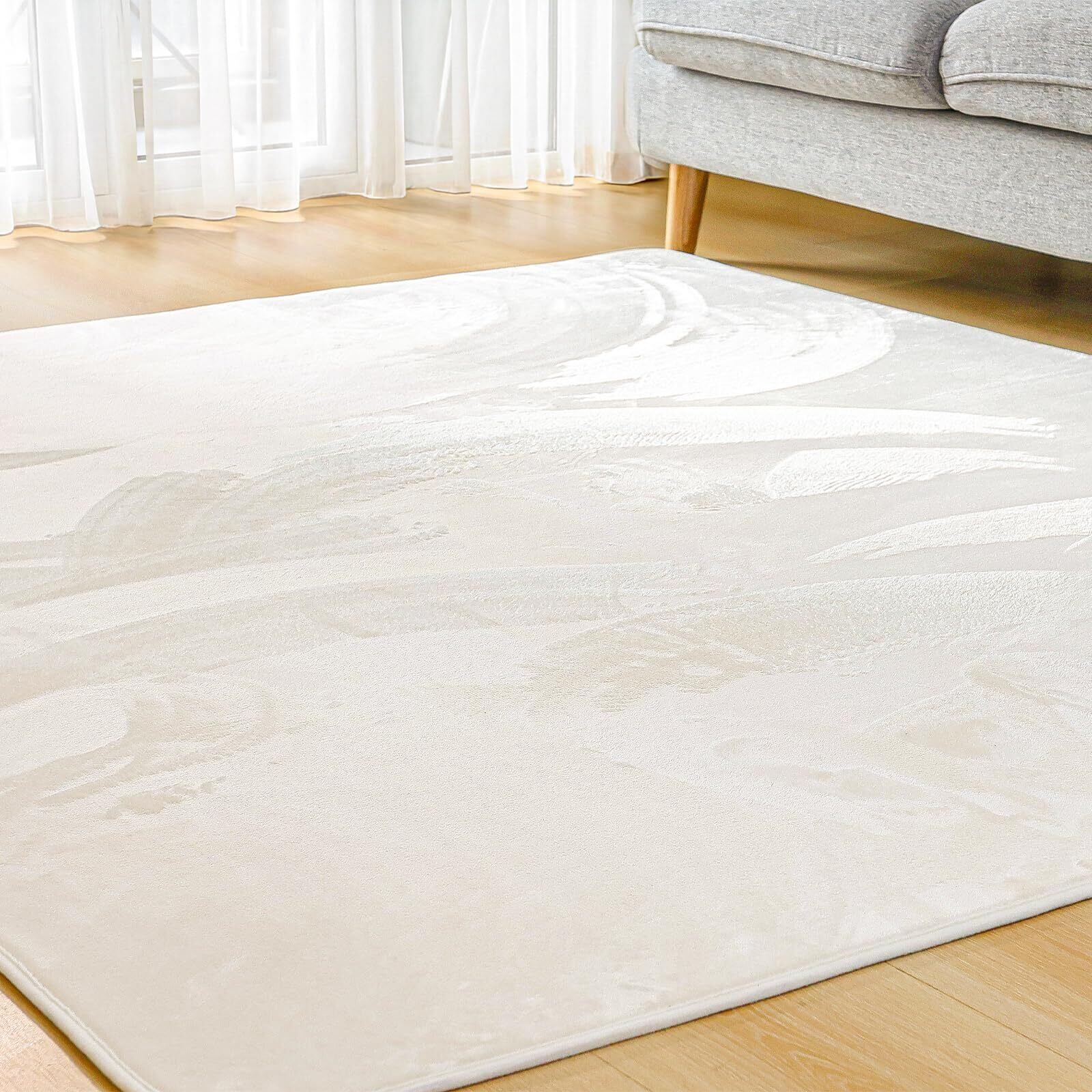 カーペット ラグマット 185×185CM 厚手14mm 低反発 防音 洗える 滑り止め付 ベッド暖房 ホットカーペット対応 防ダニ 抗菌 撥水加工 ふんわり手巻き フランネル じゅうたん 約2畳 Bestome アイボリー