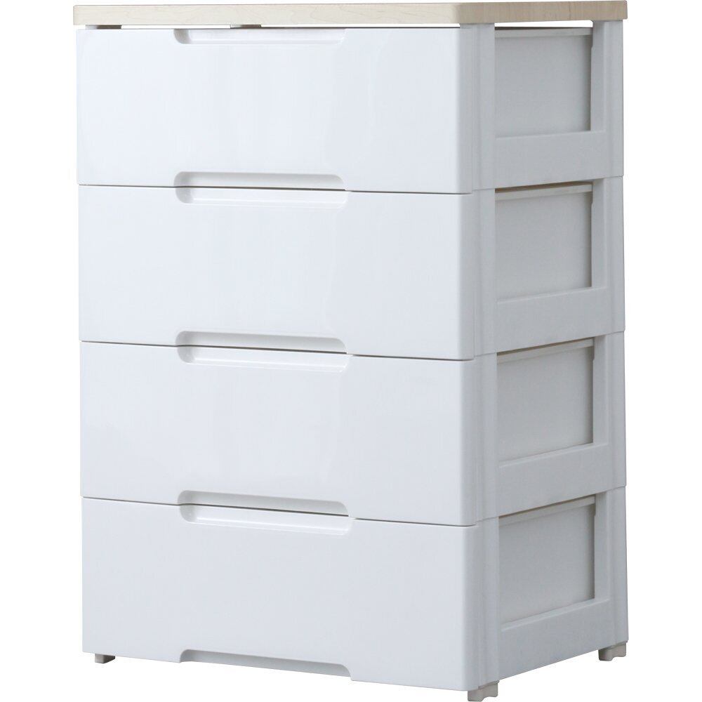 アイリスオーヤマ チェスト ラクラク引出し 木天板 4段 日本製 幅56×奥行41.5×高さ81cm ホワイト / ナチュラル 白 プラスチック HG-554R