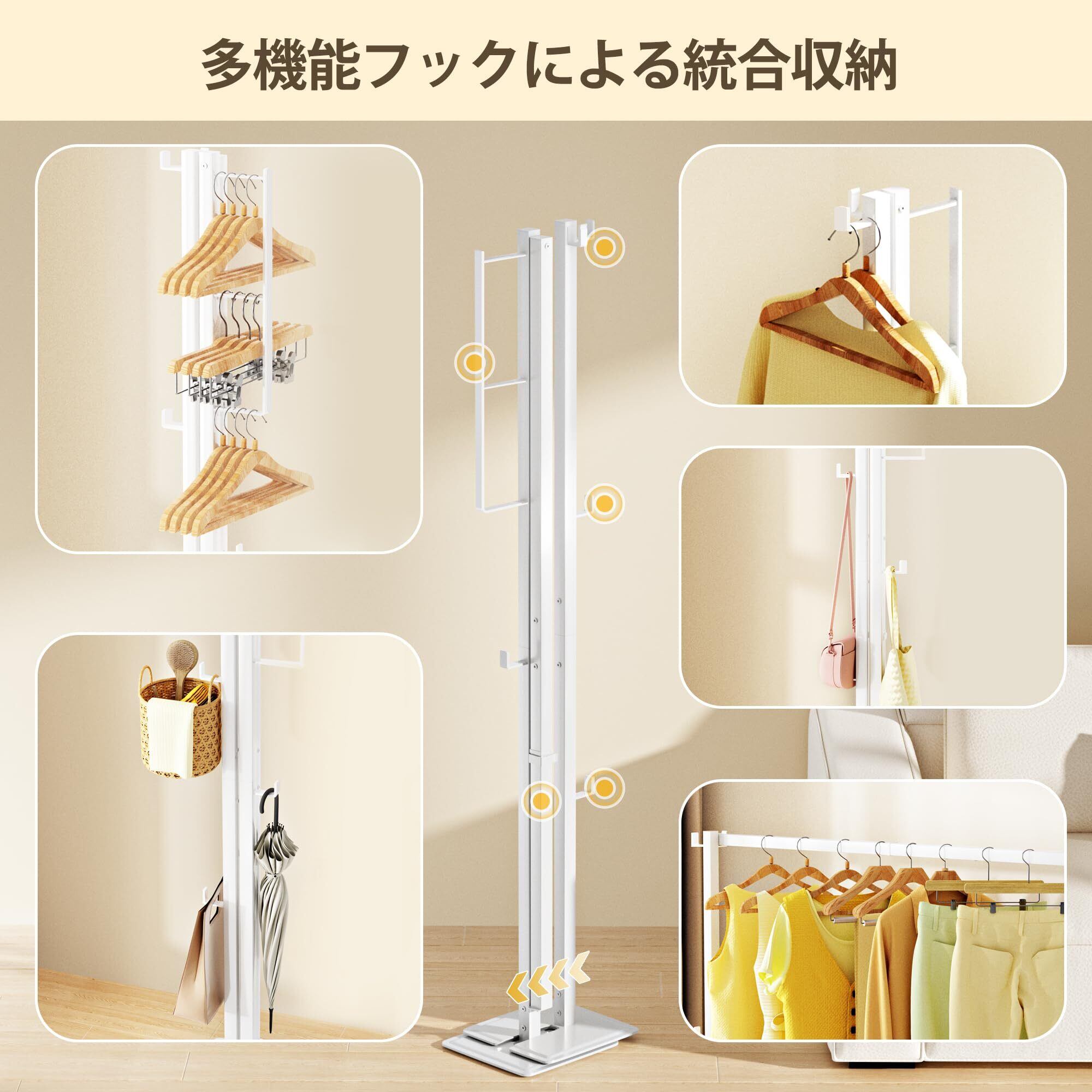 多機能フックで小物&アイテム整理もラクラク:サイドフックや小さなフックも充実していて、帽子・バッグ・洗濯ネットなどのちょい掛けに最適。折りたたみ時もカバンやコートの一時置きハンガーラックとして活躍できる2WAY仕様で、部屋干し以外でも便利に使えます