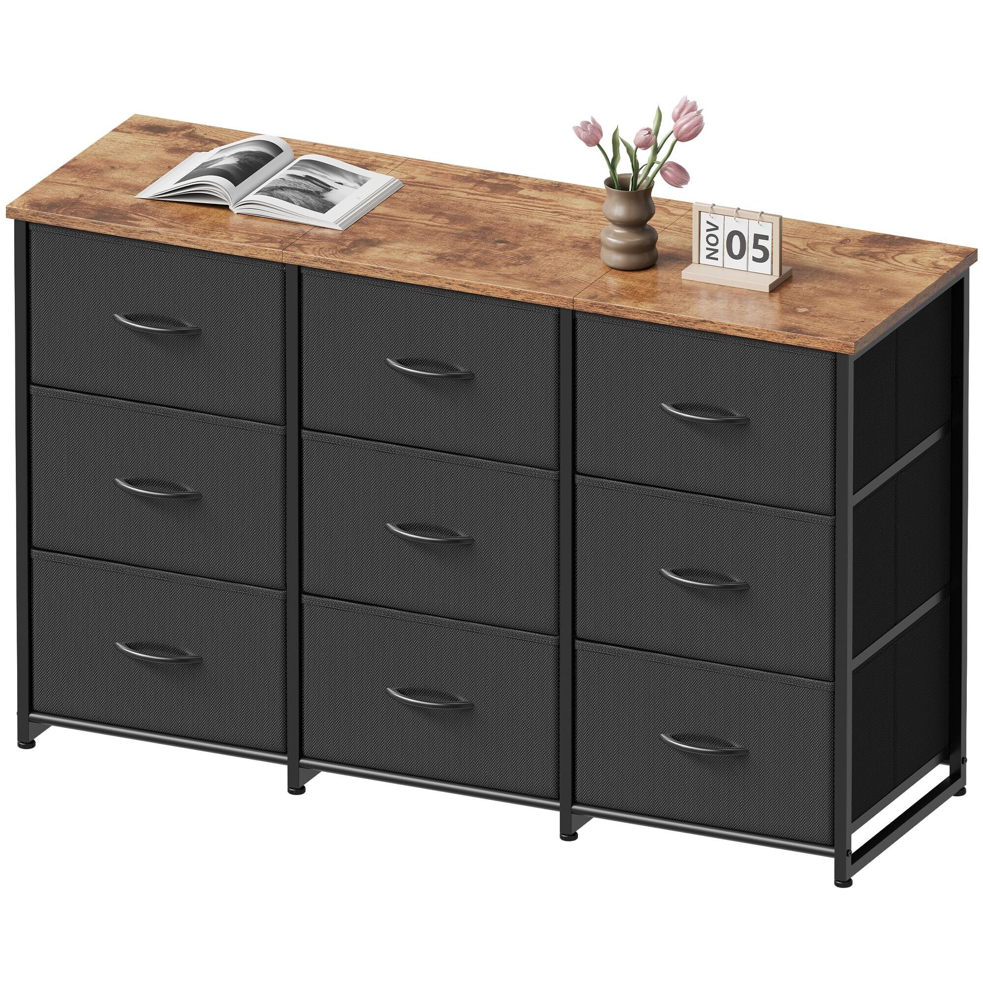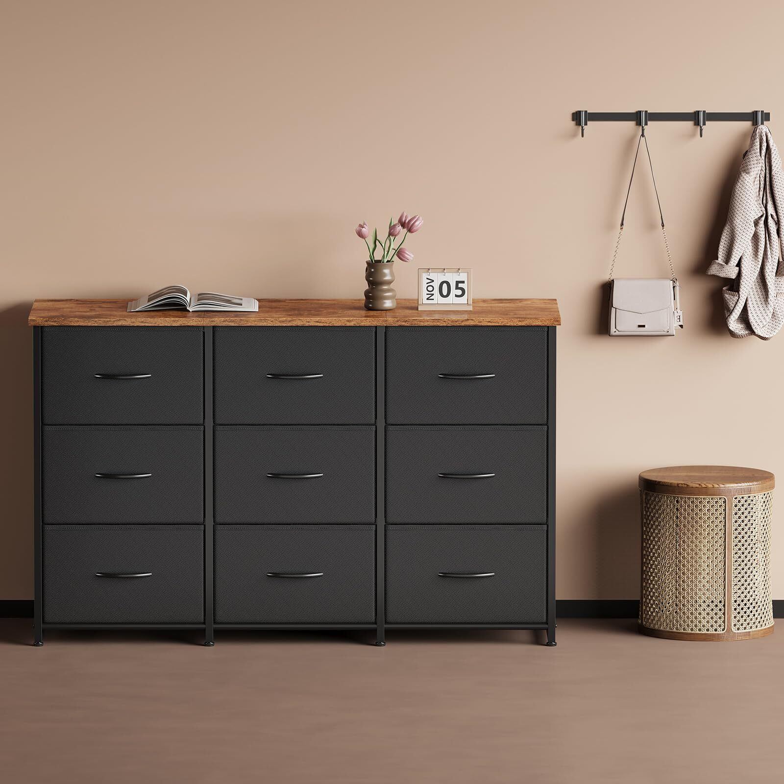 チェスト タンス 洋服収納 幅120cm 布製引き出し大容量収納 3段9杯 組立簡単 衣類収納 タンス おもちゃ 箪笥 本棚 衣装ケース 脱衣所 寝室 リビング 収納 省スペース ピンテージ