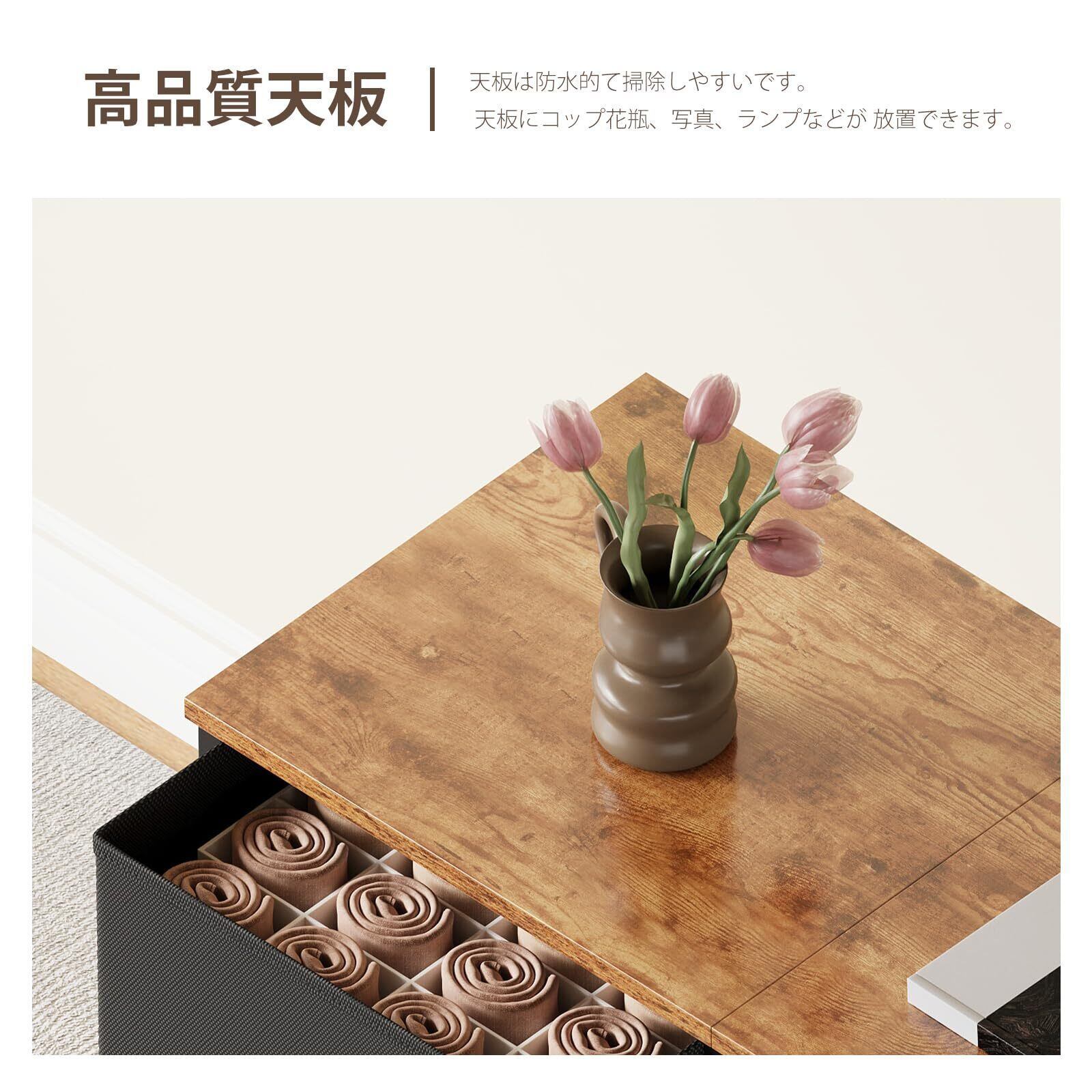 【製品材料の安全性】:布製引き出し収納キャビネットの主要部材は、厳しい国際安全基準(ASTM/TUV)をクリア。天板と引き出し内装は有害物質を抑えたP2等級材を採用。不織布の引き出しは難燃加工で、より一層の安全をお約束します。
