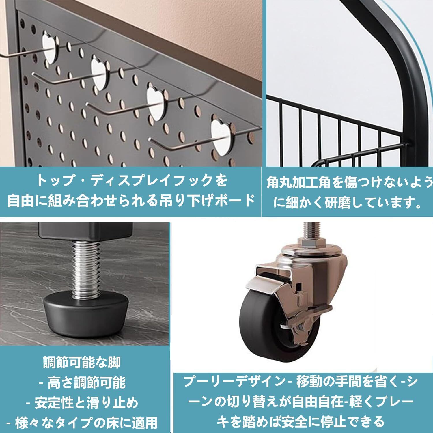 【高品質の素材】安定性と耐力のために高品質のステンレススチール製カーボンで作られており、水、錆、腐食から保護するために特別にコーティングされています。さらに、ブレース構造がこの収納棚の安定性と頑丈さを高めています。