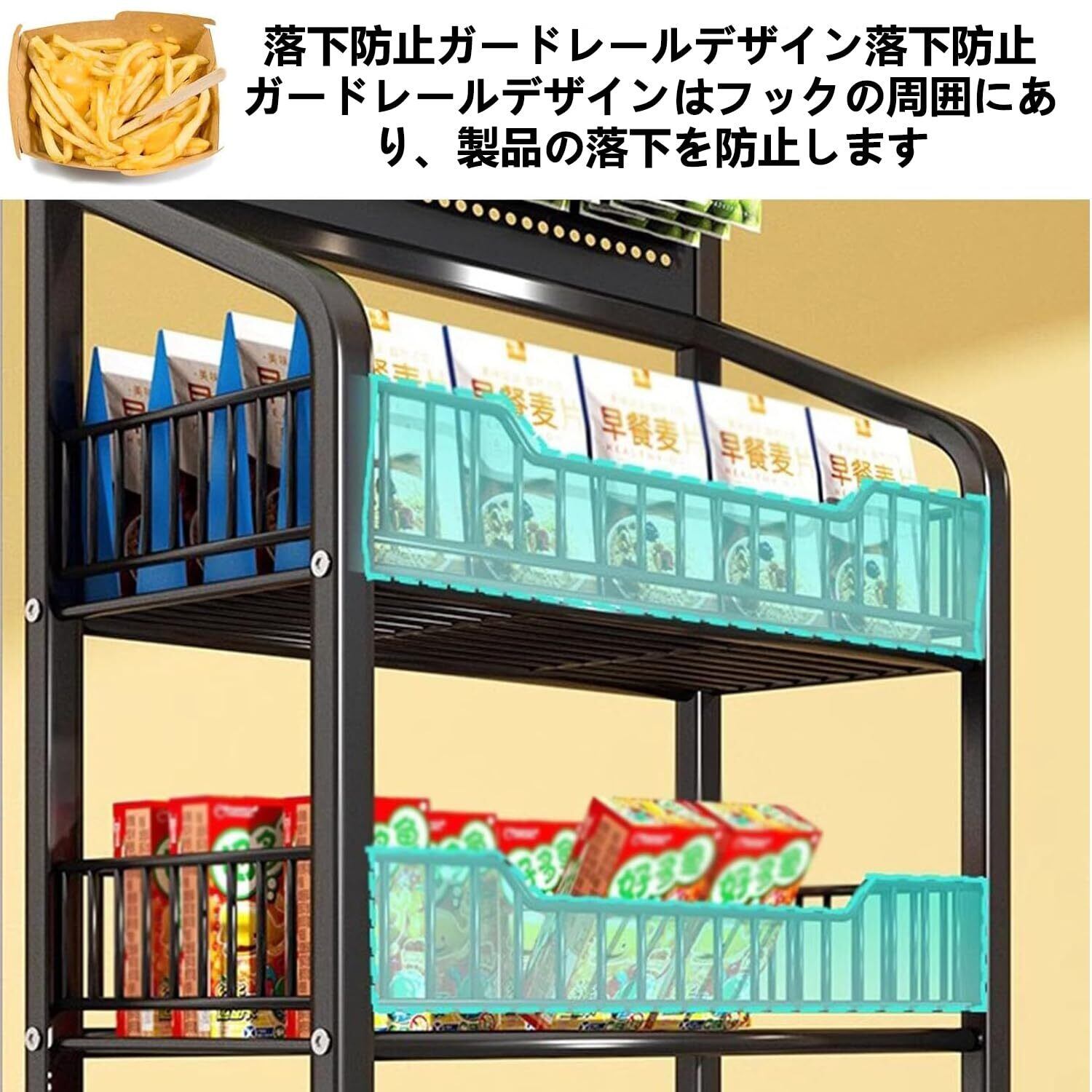 製品特徴:小売用スナック陳列ラックは、コンビニエンスストア、果物店、スーパー、その他のビジネス施設で顧客の注目を集めるのに最適です。また、省スペースでご自宅を整理整頓するのにも便利です。